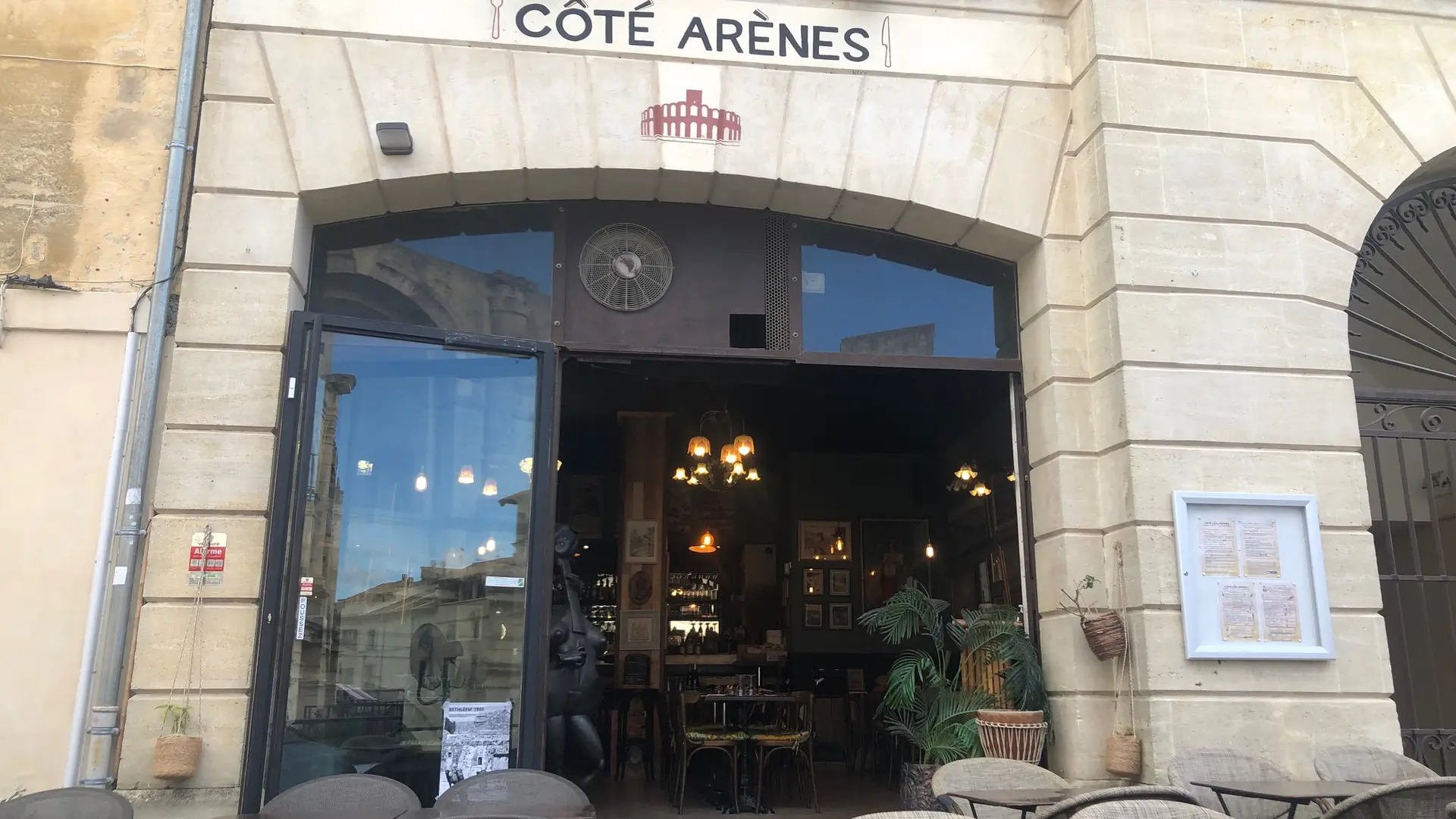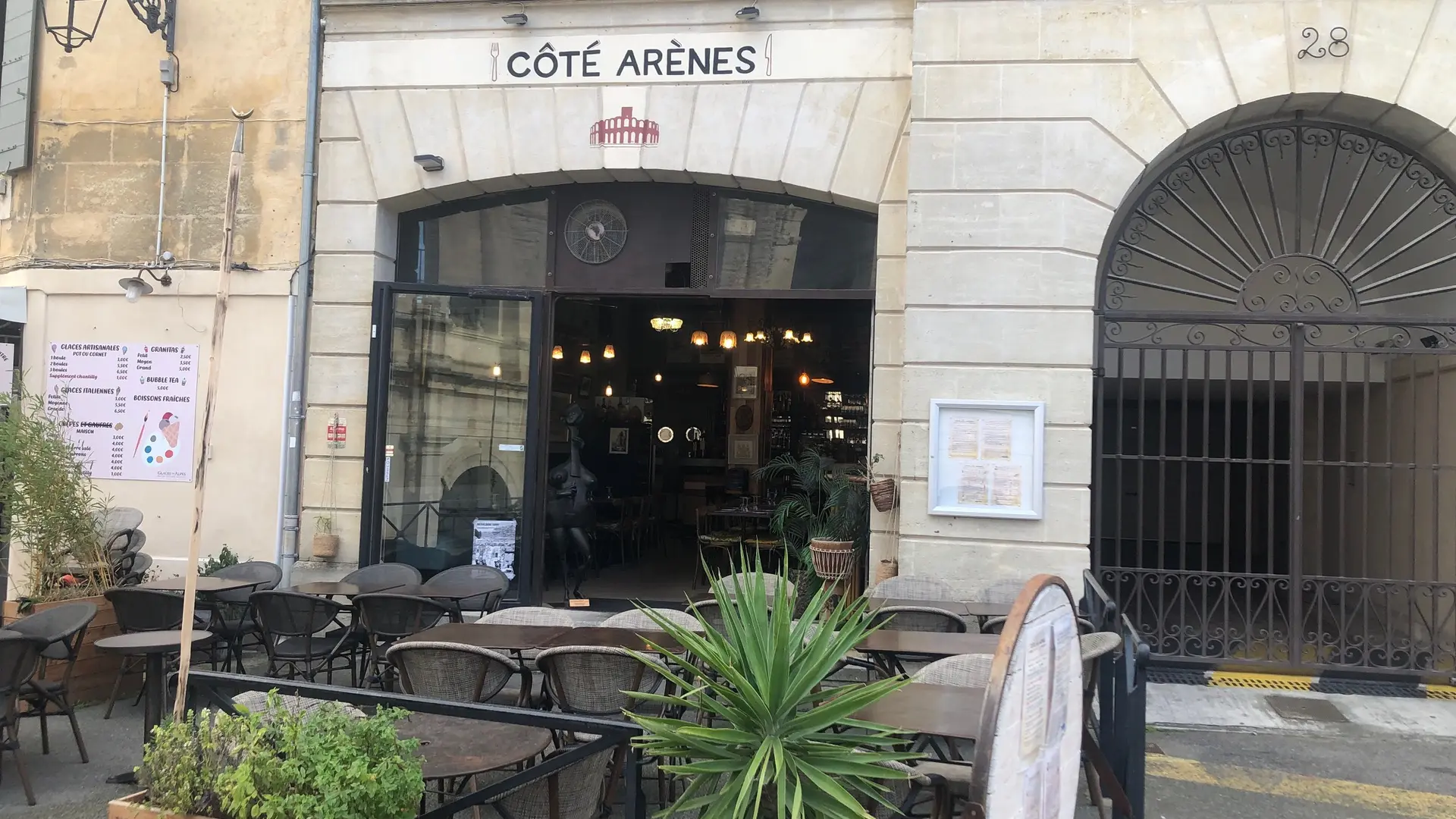 Das gegenüber dem römischen Amphitheater eingerichtete Coté Arènes vermischt auf raffinierte Weise die Geschmäcker des Südens. Die Provence kommt mit Gardianne und Stiersteak auf den Tisch, begleitet von Reis aus der Camargue. Spanien ist nie weit entfernt, mit sonnigen Klassikern wie Paella, Fideua oder Sarsuela sowie den berühmten Tapas. Auf der Terrasse, die vor der Sonne geschützt ist, herrscht eine sanfte, gesellige Atmosphäre, ideal für ein Mittagessen mit der Familie oder ein Abendessen zu zweit. Kindermenüs, Salate und originelle Desserts vervollständigen die großzügige und duftende Speisekarte. Der Saal im Art-Deco- und Camargue-Stil beherbergt eine Dauerausstellung von Ölgemälden, Aquarellen, Pastellen und Lithografien großer provenzalischer Künstler, und hochwertige Musik begleitet Ihr Essen. Verschiedene Instrumente stehen unseren musikalischen Gästen zur Verfügung. Handwerkliche und biologische Biere, biologische und lokale Weine, arrangierte Rums... Lassen Sie sich von einer schnörkellosen, aber schmackhaften Küche in einem atypischen Ort mit herzlicher Atmosphäre überraschen.
