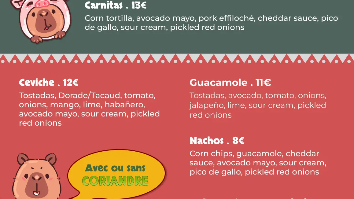Inspiriert vom Food-Truck-Konzept servieren wir mexikanische Tacos, Nachos und frische Ceviche, hausgemacht von der Maistortilla bis zu den Tolopos, den Nacho-Chips.