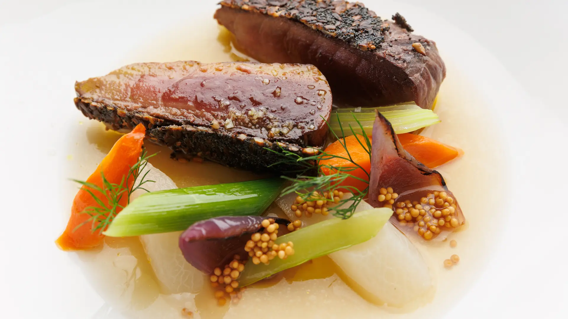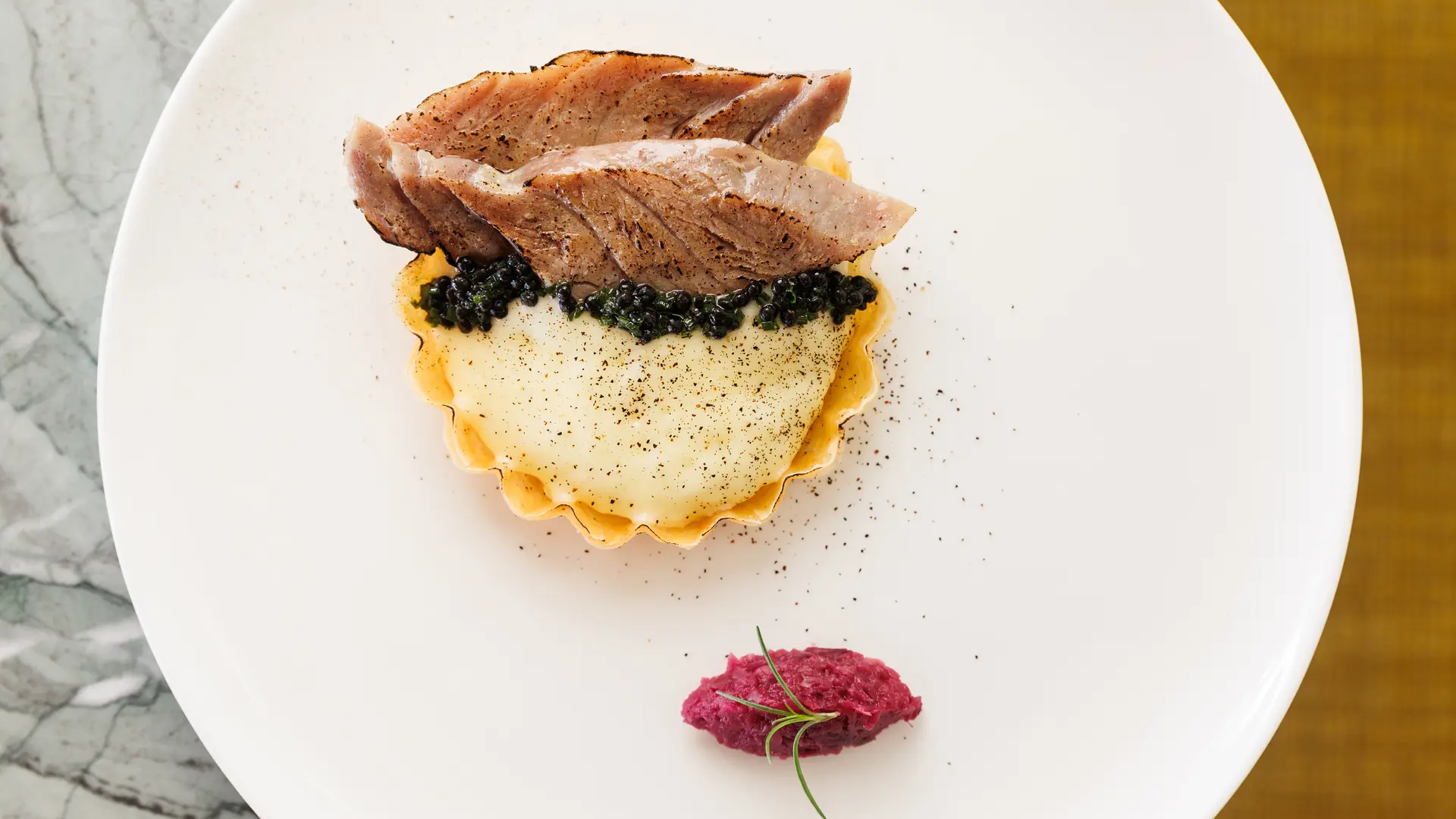 Mit lokalen Produkten zubereitet, bringt der Küchenchef des Gourmetrestaurants La Rascasse das gastronomische Erbe der Region Var zur Geltung.