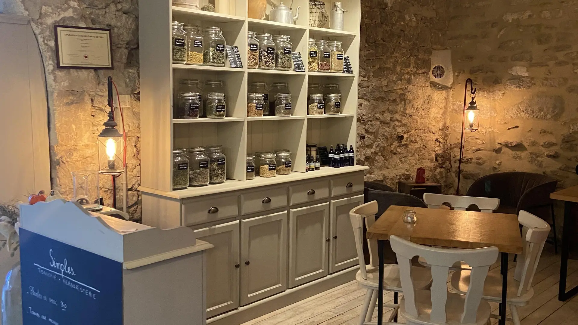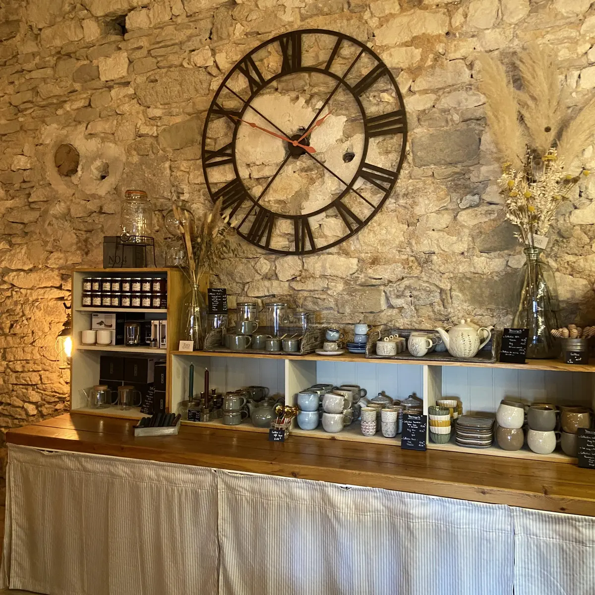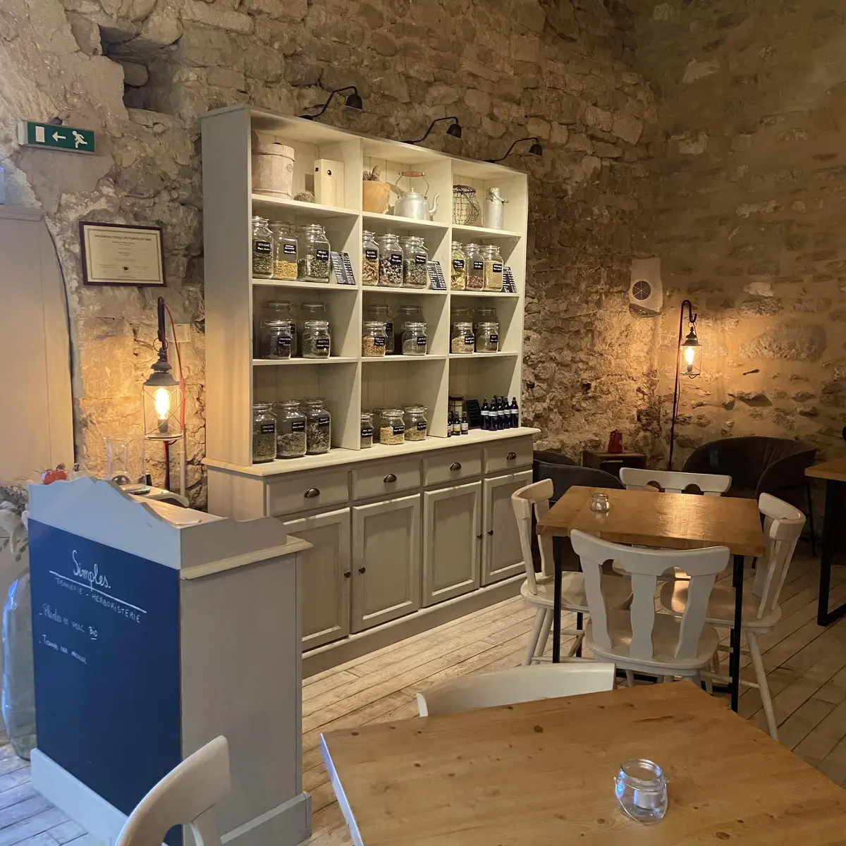 Restaurant, Teestube durchgehend geöffnet. Boutique-Bereich, Feinkost- & Kräuterladen. Im Winter in einem gemütlichen Rahmen und im Sommer auf der Terrasse mit Blick auf den Mont Ventoux.