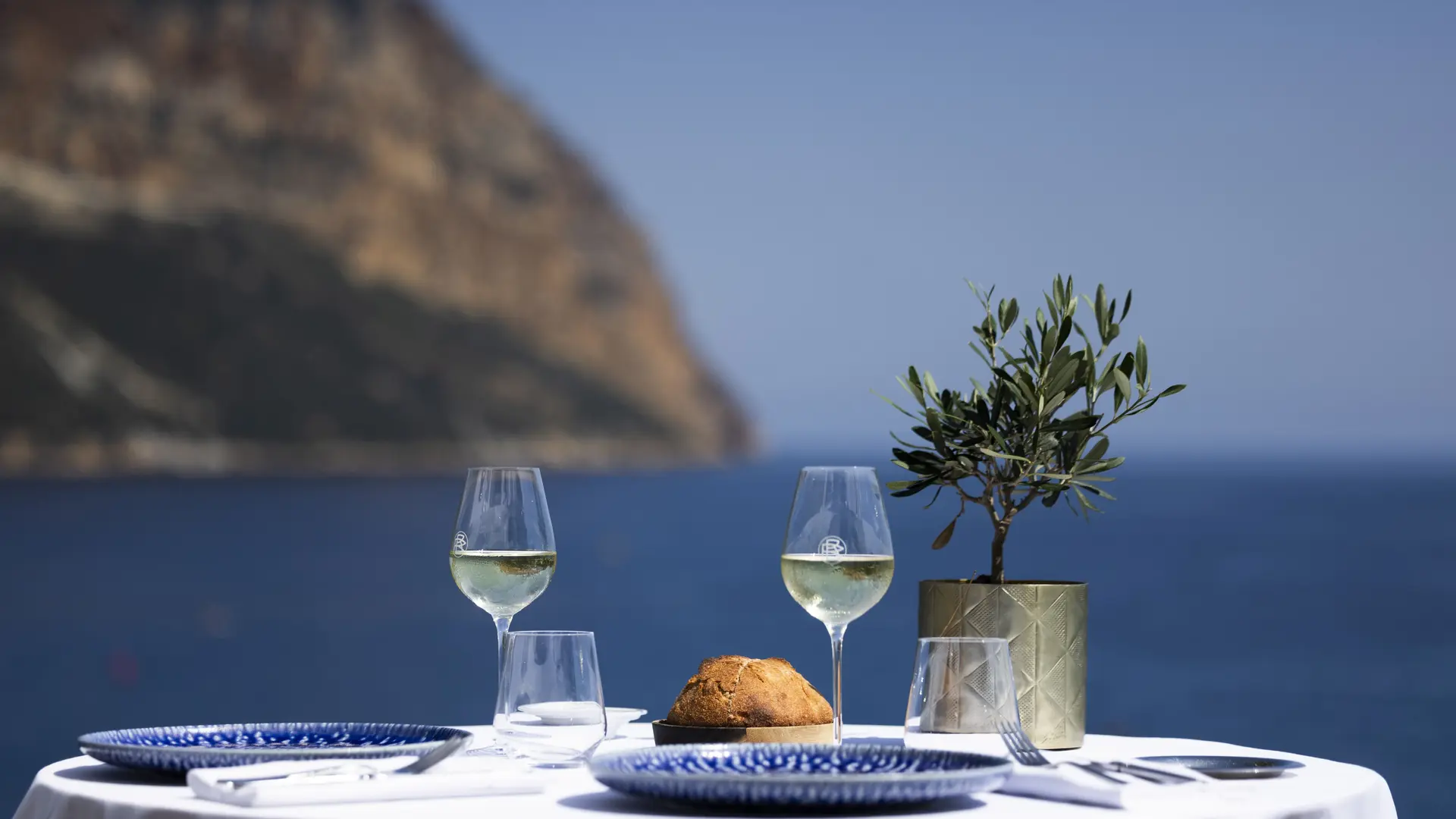 In einem raffinierten Dekor mit Blick auf das Meer und das Cap Canaille bietet der Chefkoch eine mediterrane Speisekarte mit regionalen Produkten an.