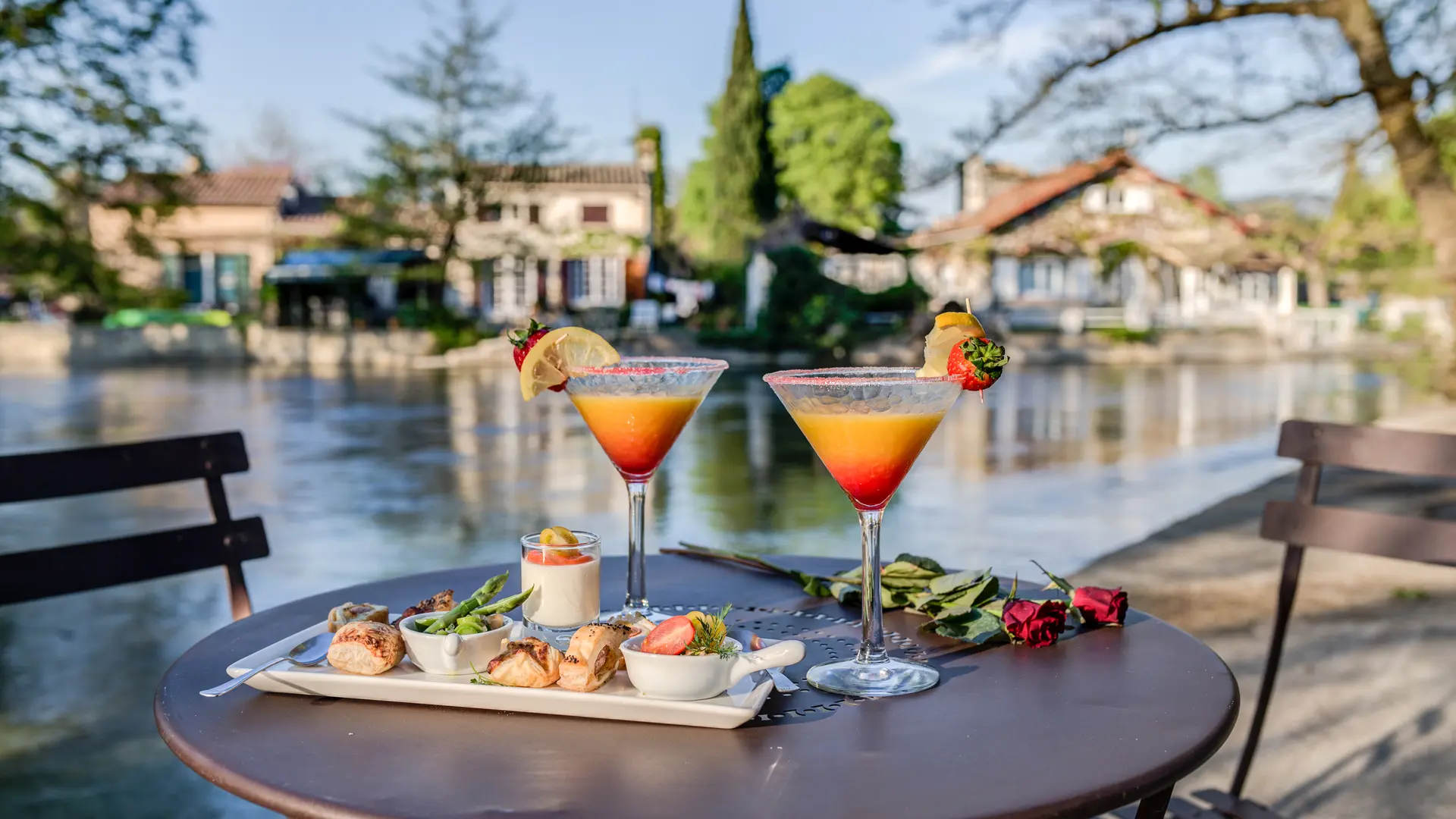 Unser Restaurant L'iDisle empfängt Sie in einer grünen Oase am Ufer der Sorgue. Sie haben die Möglichkeit, an schönen Tagen unsere schattige Terrasse zu nutzen oder die gedämpfte Atmosphäre in unserem Innenraum zu genießen.