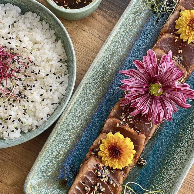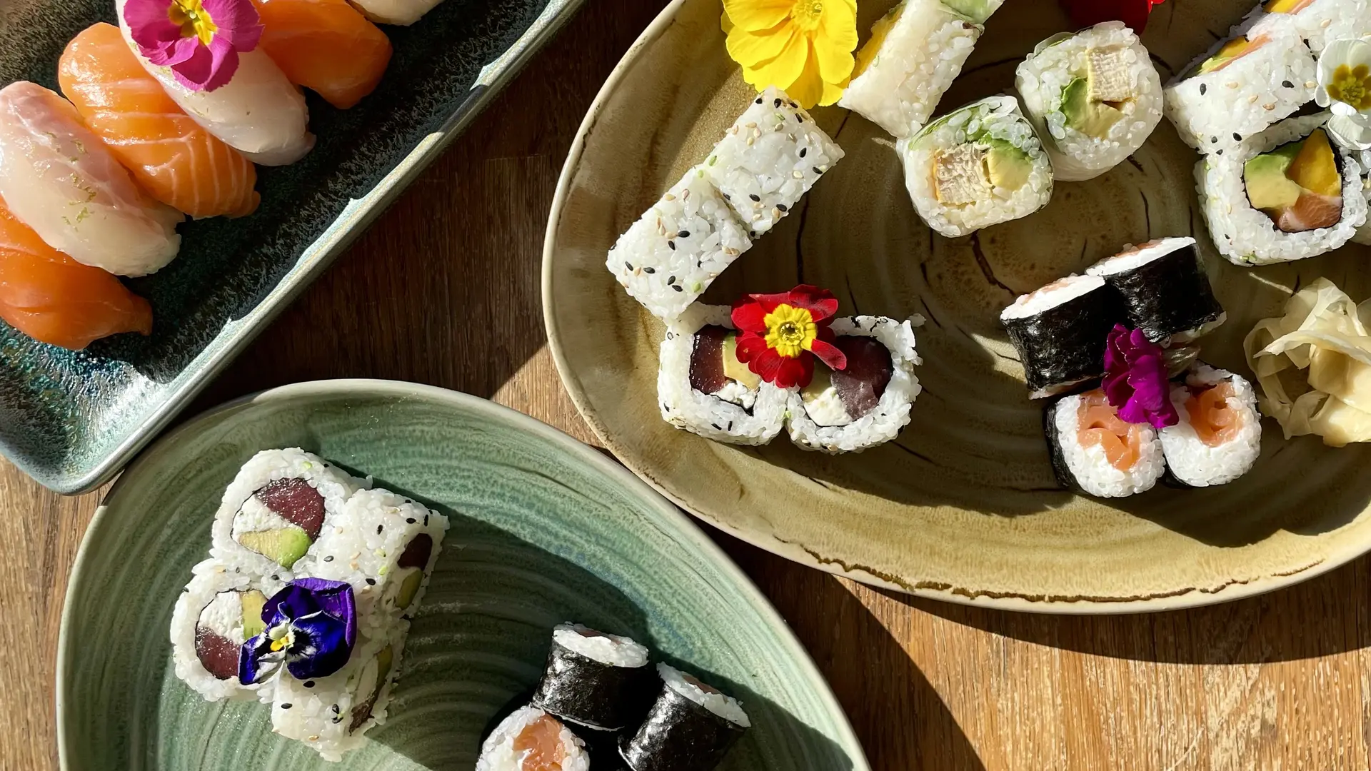 Sushi-Restaurants vor Ort mit einem atemberaubenden Blick auf das Meer in einem modernen und gemütlichen Rahmen.