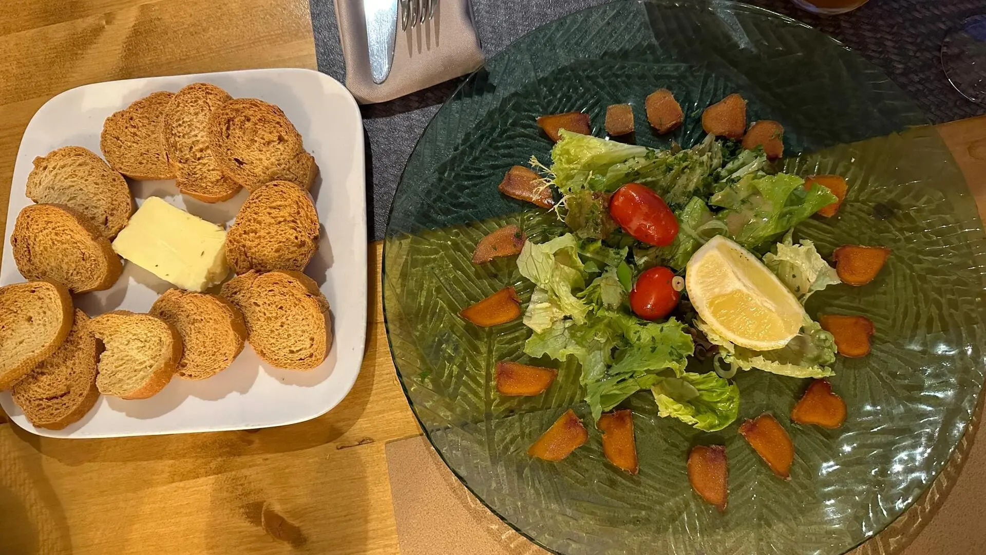 - La verde (Salat, Tomate, Schalotte, Parmesanspäne, Pinienkerne und Croutons): 10€.