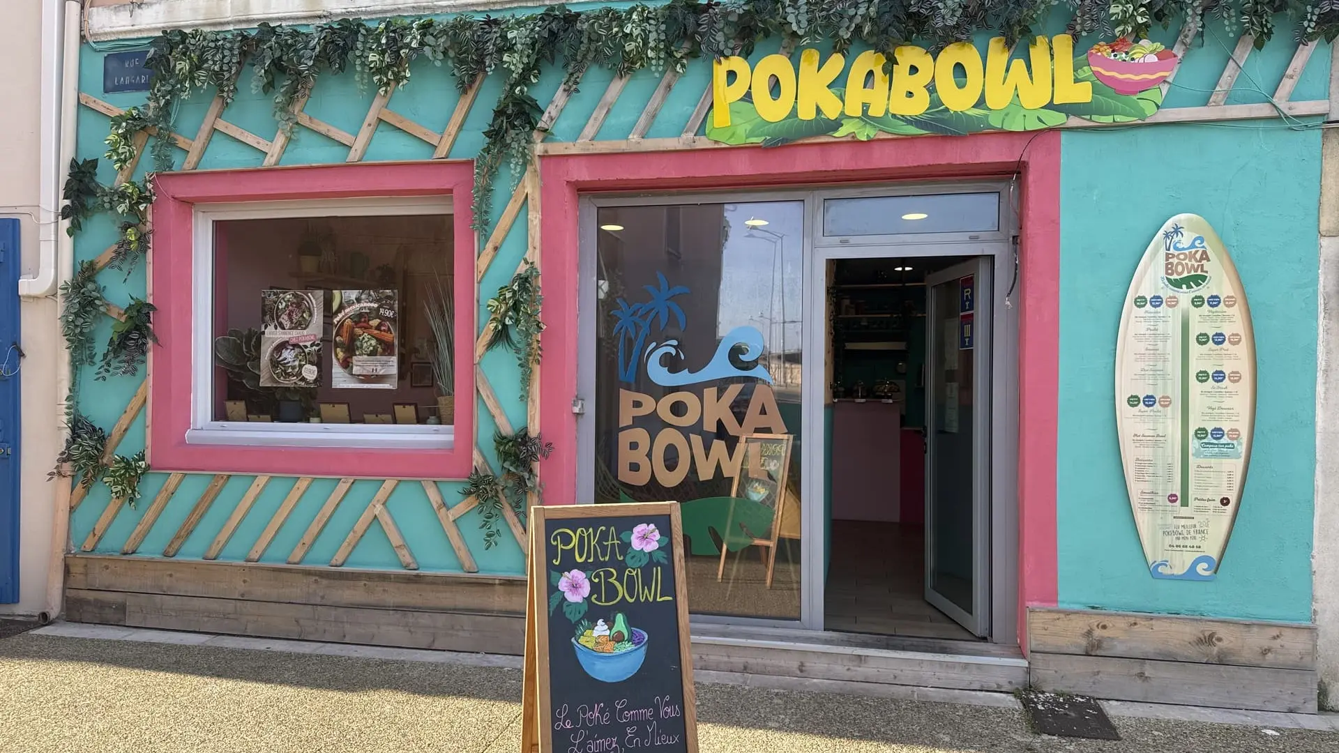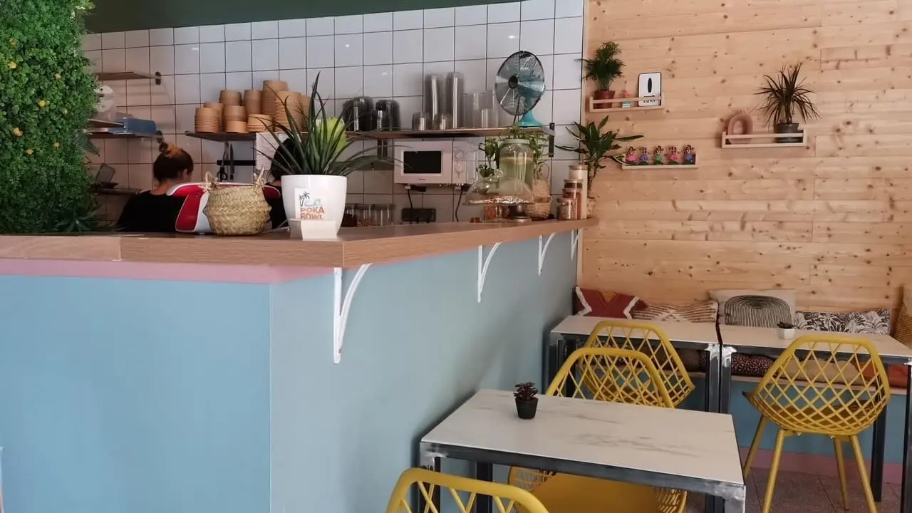- Poké Falafel: Falafel, roter Hummus, eingelegte Karotte, Gurke, Kichererbse, Zucchini, Sesam.