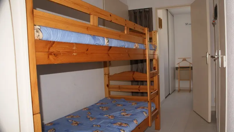 - eine durch Türen isolierte Schlafecke mit 2 Etagenbetten und kleinem Schrank