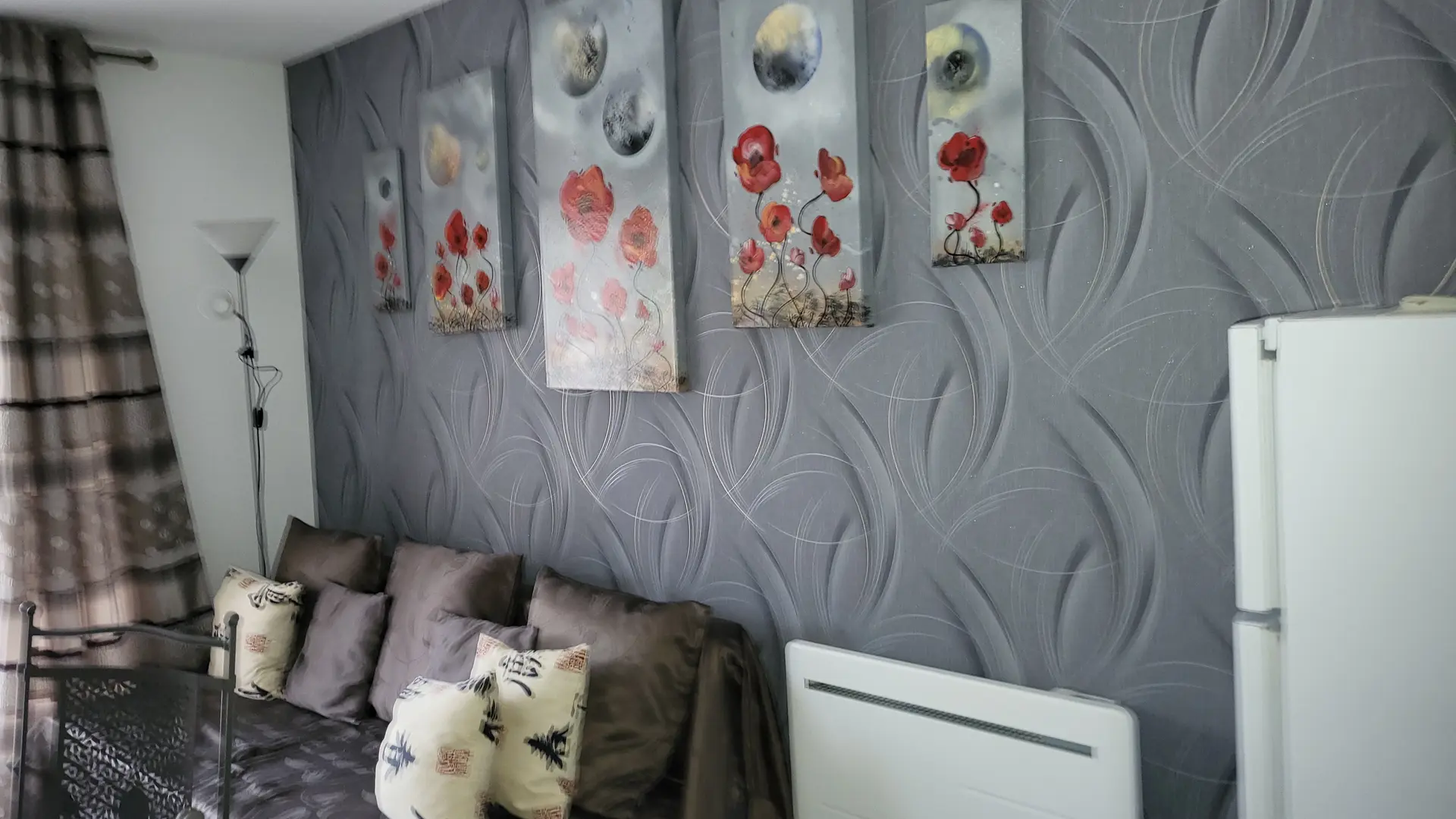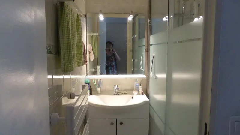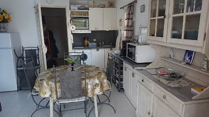 Ausstattung: Induktionskochplatten, Dunstabzugshaube, traditioneller Minibackofen, Mikrowelle, großer Kühlschrank mit kleinem Gefrierfach, Waschmaschine 3,5 kg, Flachbildfernseher, Dvd-Player und viele kleine Haushaltsgeräte, Zubehör und Geschirr.