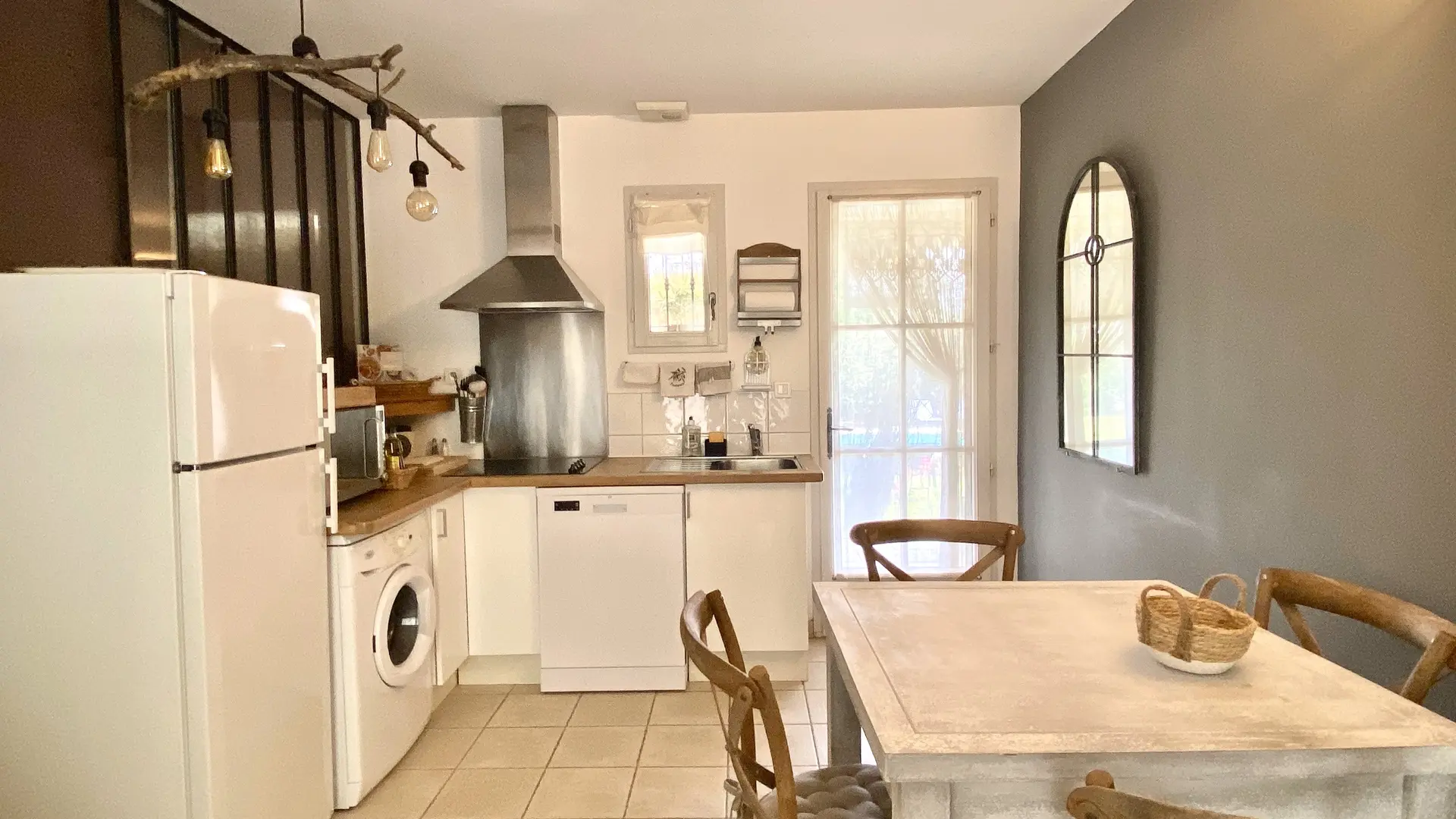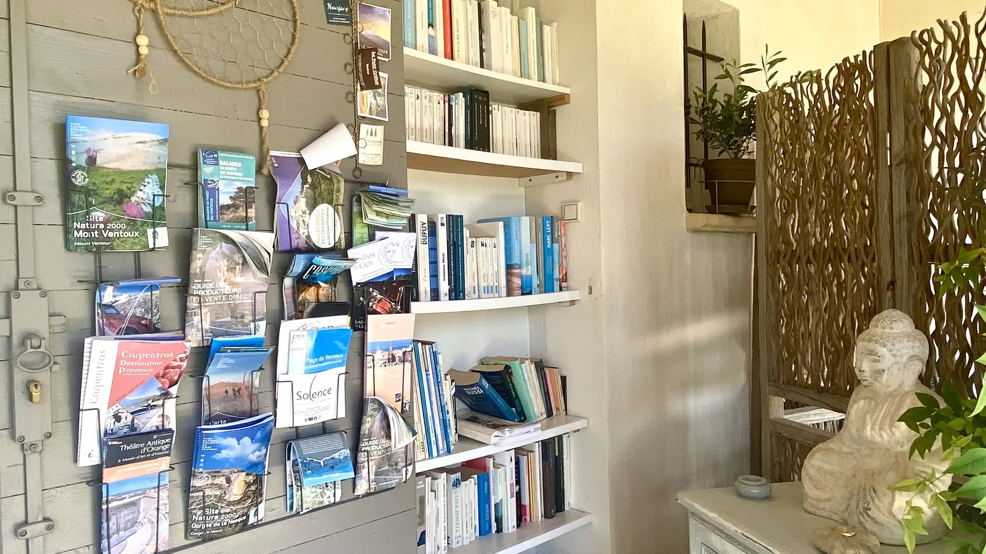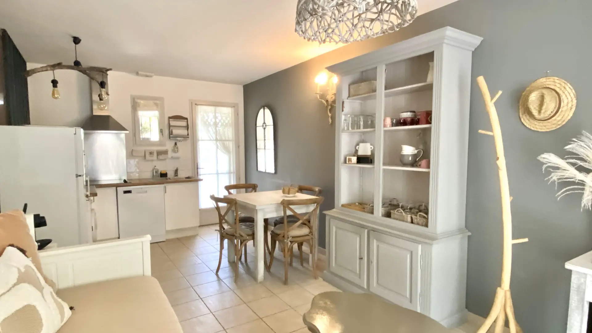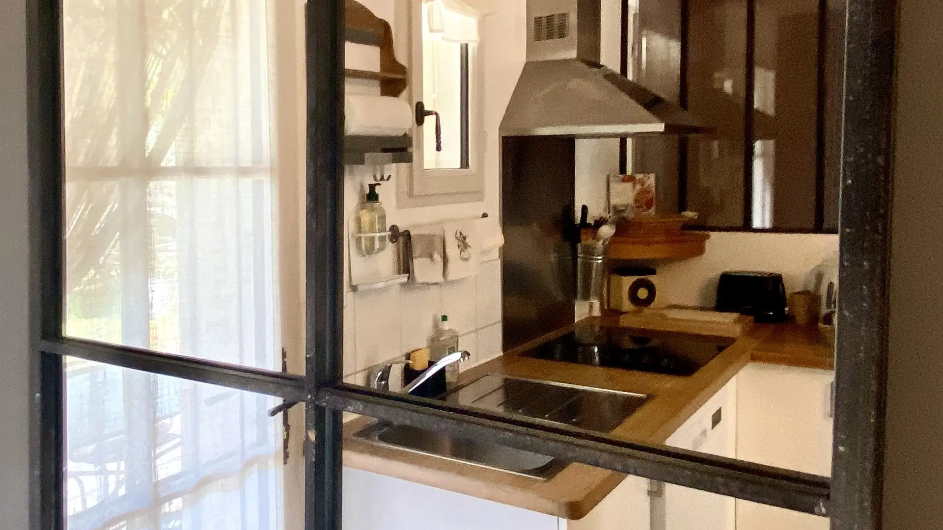 Zwei Terrassen: eine überdachte gegenüber dem Pool und auf der anderen Seite der Wohnung, gartenseitig mit dem kühlenden Carpentras-Kanal, im Schatten eines großen Sonnenschirms. Gasgrill zur gemeinsamen Nutzung.