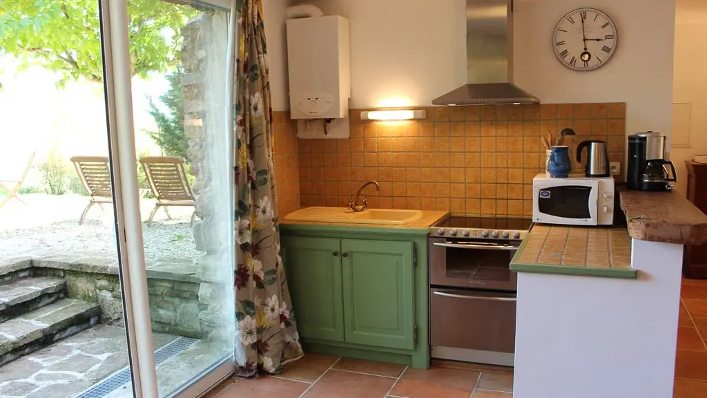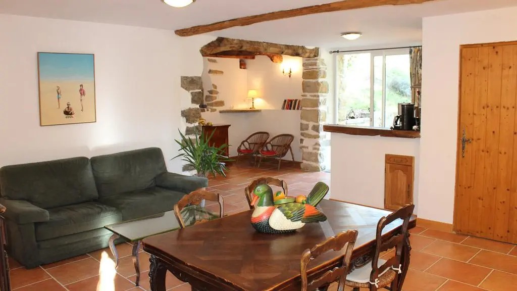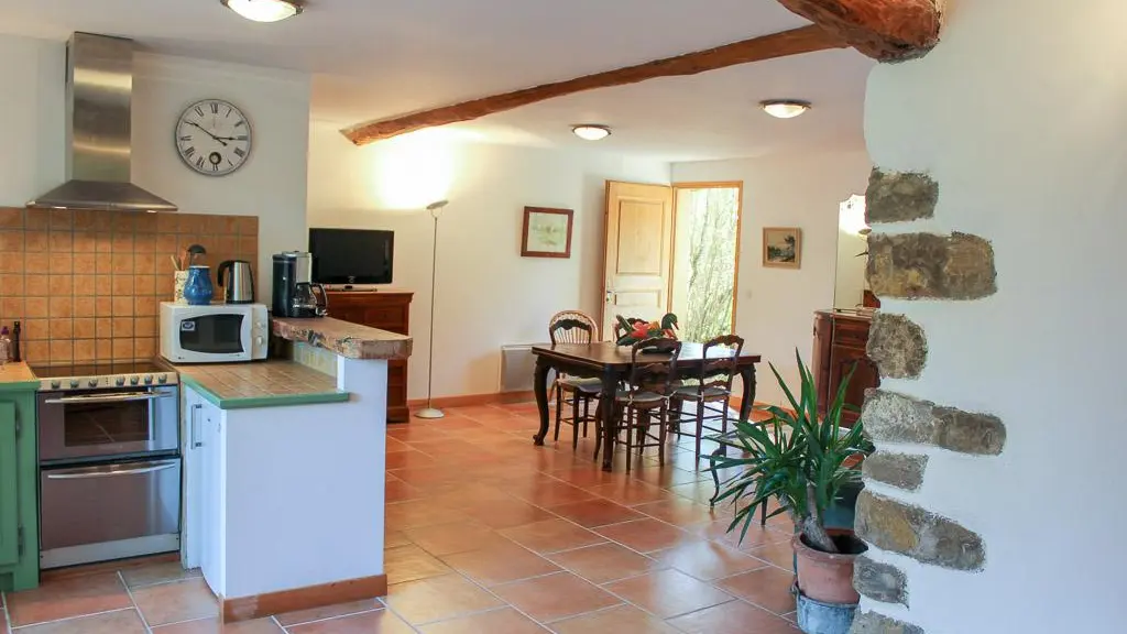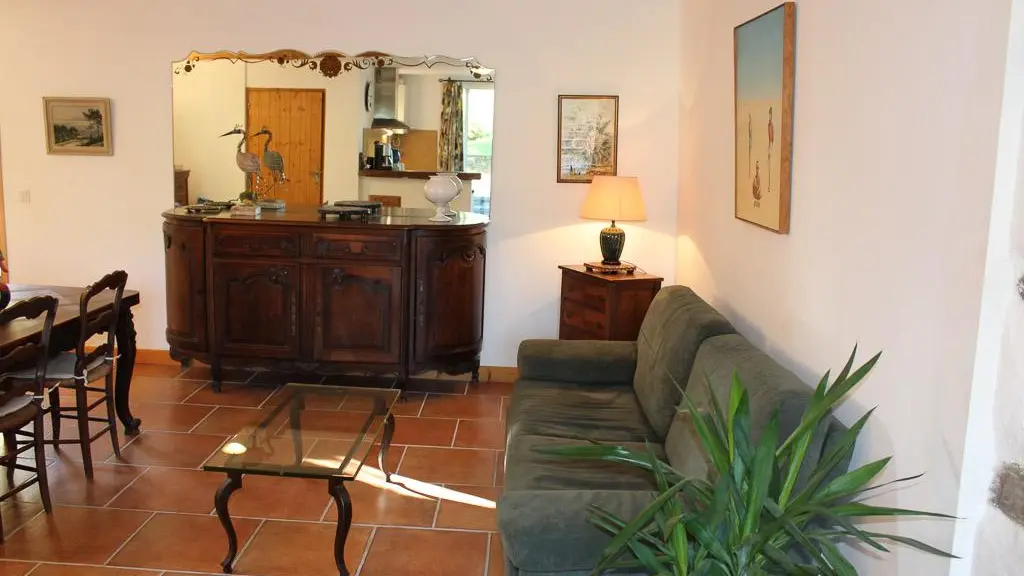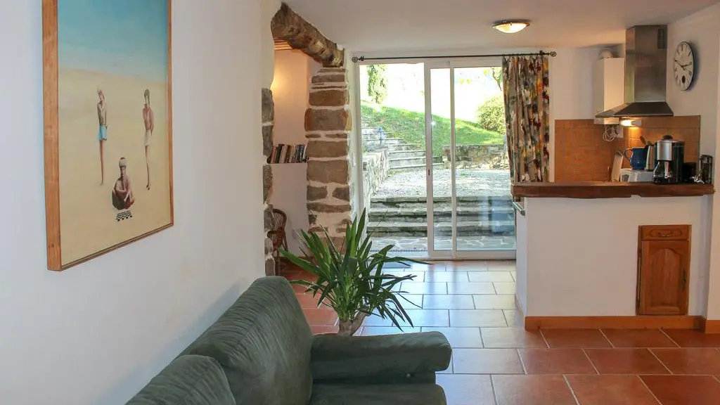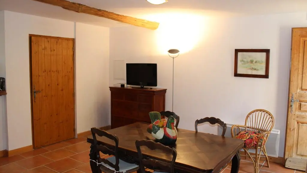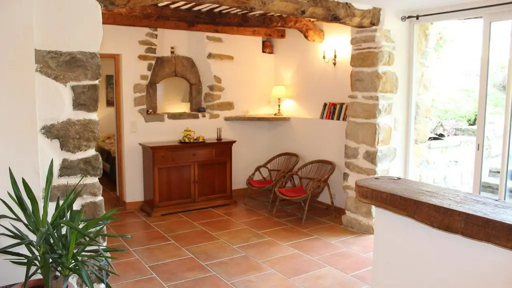 Die 51 m² große Wohnung befindet sich im Erdgeschoss eines ehemaligen Bauernhofs, der die Wohnung der Eigentümer und ein Gasthaus umfasst, und liegt auf einem landwirtschaftlichen Anwesen.