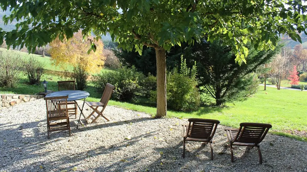 Oase der Ruhe. Dieser alte, renovierte Bauernhof aus Stein liegt auf einem großen landwirtschaftlichen Anwesen mit einem herrlichen Blick über das Tal. Er umfasst die Unterkunft, die Wohnung der Eigentümer und ein Gasthaus.