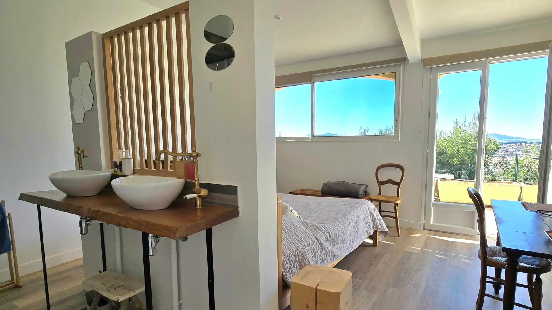 Umgeben von mediterraner Vegetation bietet LA MAISON BLEUE einen atemberaubenden Blick auf Toulon und die umliegenden Hügel. Die 3 vom Haupthaus unabhängigen Schlafzimmer laden zum Entspannen ein. Sie sind geräumig und hell und mit allen modernen Annehmlichkeiten ausgestattet: hochwertige Bettwäsche, Klimaanlage, kostenloser WLAN-Anschluss und eigenes Badezimmer mit separater Toilette. Das Familienzimmer verfügt zudem über einen Flachbild-TV und eine Küchenzeile.