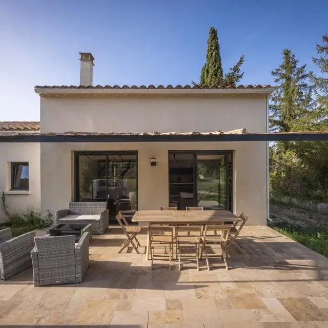 Die Gîtes Notre Dame bieten 2 Gîtes für 2 und 6 Personen, die auch zusammen gemietet werden können (8 Personen). Dieses Anwesen am Fuße der Kapelle Notre Dame du Château (Zugang zu einem Aussichtspunkt mit Panoramablick über das gesamte Tal in 10 Minuten zu Fuß) liegt in einer geschützten ländlichen Umgebung im regionalen Naturpark der Alpilles. Die Cottages wurden im Jahr 2023 mit schönen Materialien (Holz, Travertin...) gebaut und haben Zugang zu einem Gemeinschaftspool. Sie liegen nebeneinander, sind jedoch durch einen gemeinsamen Waschraum mit Waschmaschine und Reinigungsutensilien getrennt. Der Eigentümer wohnt auf dem angrenzenden Grundstück. Die große Gîte besteht im Erdgeschoss aus: