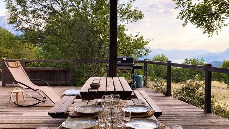 Herrlicher Blick auf die Berge und den See von Serre-Ponçon, Südausrichtung auf 1150 m Höhe. Südhochalpen: 10 Minuten von der Wasserfläche von Embrun, 20 Minuten von der Skistation Réallon und 30 Minuten von der Skistation Les Orres entfernt, vor den Toren des Nationalparks Les Écrins.