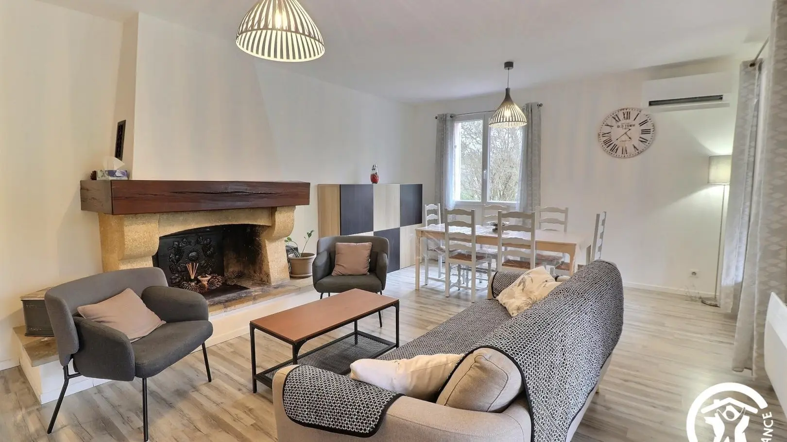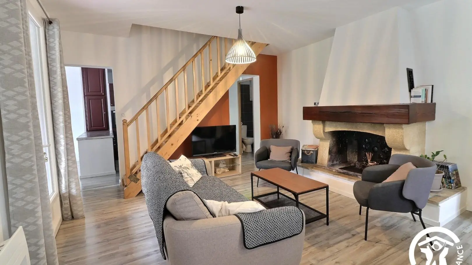 In einer grünen Umgebung, versteckt im Pinienwald, ist diese Gîte ein völlig unabhängiges Haus mit einem privaten Garten von 3000 m² und einer geschützten Terrasse mit Gartenmöbeln. Es wurde 2021 komplett renoviert und besteht im Erdgeschoss aus: