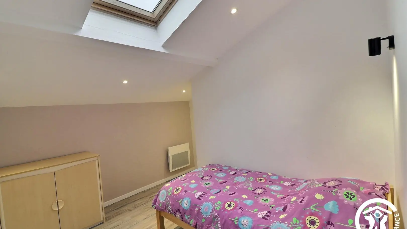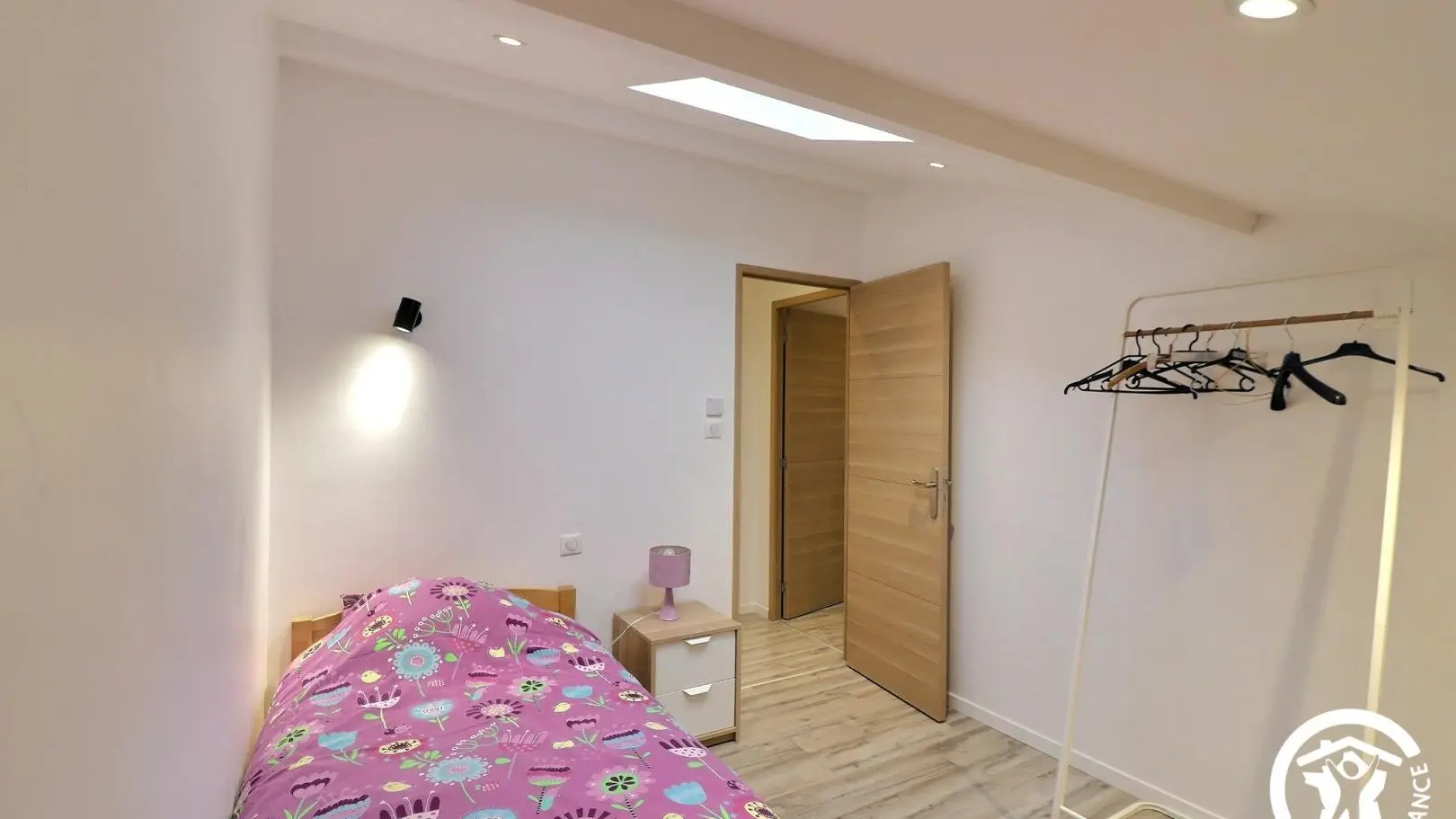 - Ein zweites Schlafzimmer mit 1 Einzelbett 90x190cm, Nachttisch, Nachttischlampe, Leselampe, Kleiderständer, Kommode und Dachfenster mit elektrischen Jalousien.