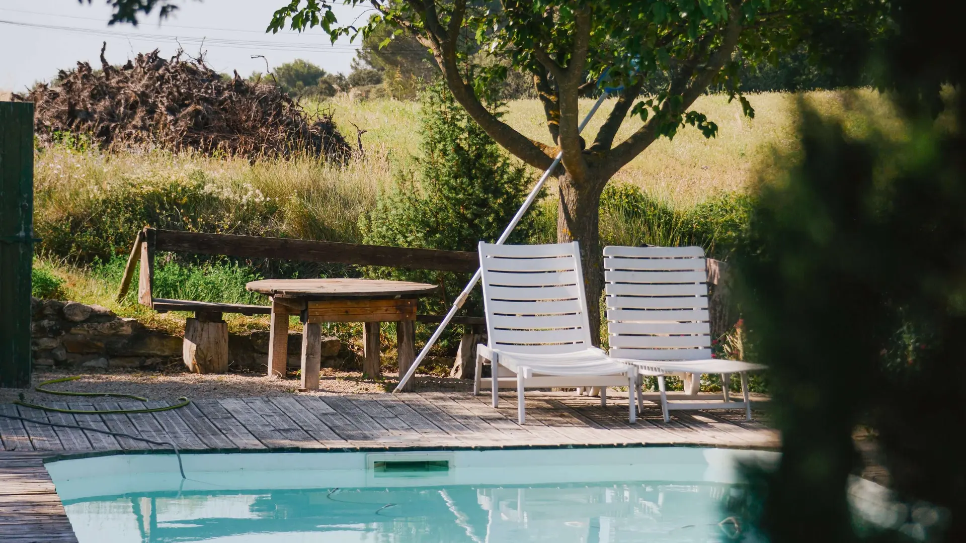 Komplett renovierte Villa aus den 1970er Jahren mit eingezäuntem Privatgrundstück, Terrasse nach Süden, 400 m vom Dorf. Swimmingpool (10 x 4 m) mit Alarmschutz, gemeinsame Nutzung mit einer weiteren Ferienwohnung in den Weinfeldern, 50 m vom Haus.