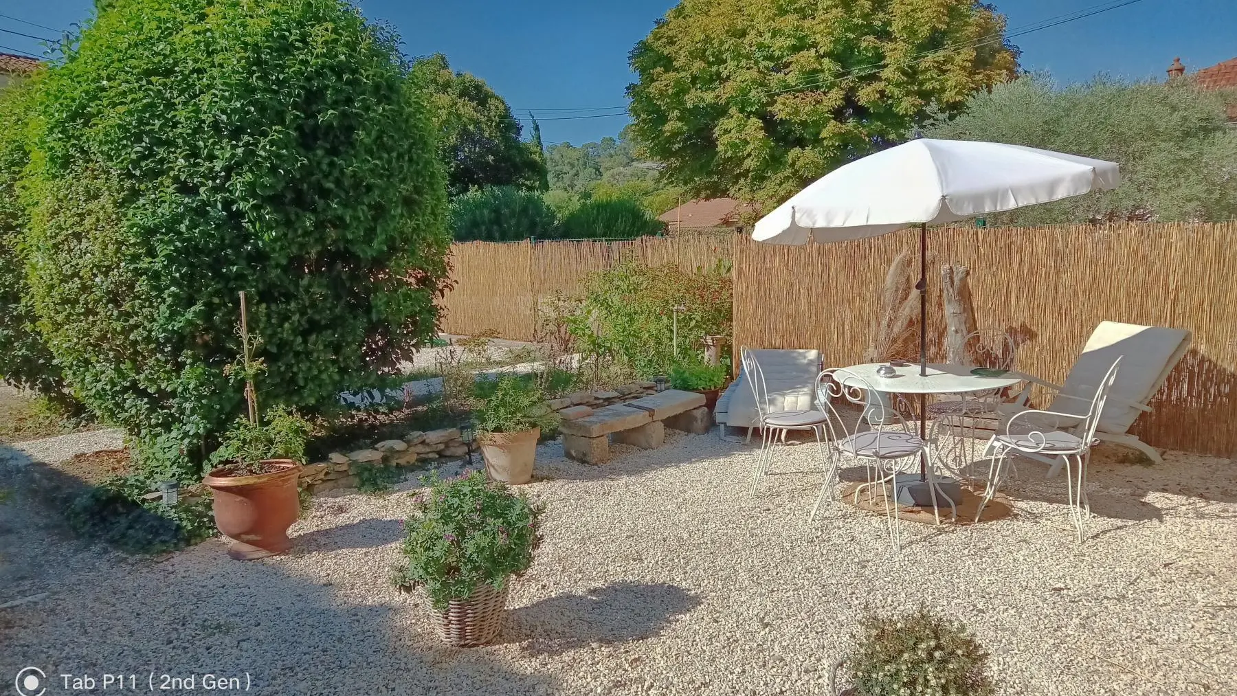 Das moderne Badezimmer ist mit einer Dusche, einem Handtuchwärmer und einem WC ausgestattet. Draußen lädt ein geschlossener, mit Kies bedeckter Innenhof, der durch ein Erkerfenster zugänglich ist, zum Frühstücken in der Sonne oder zum Lesen im Schatten der Alpillen ein. Ein privater Parkplatz steht vor dem Cottage zur Verfügung.