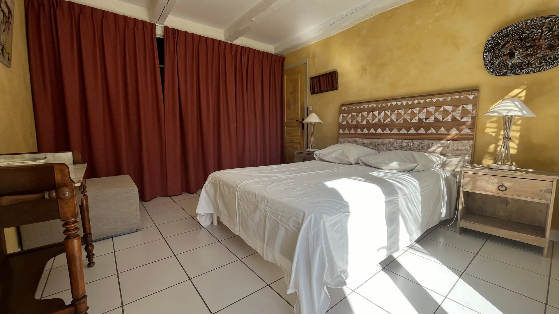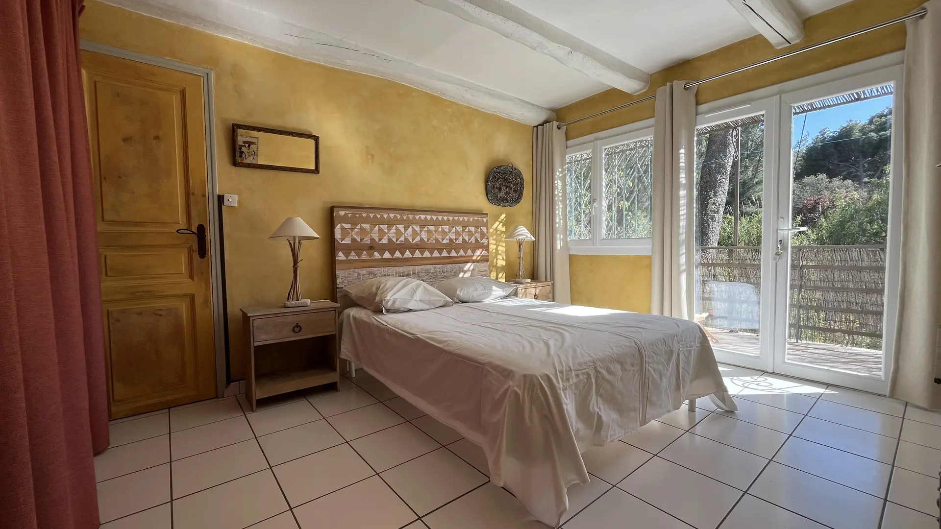 Ich biete Ihnen ein klimatisiertes Zimmer in den Farben der Provence, dieses Zimmer ist ideal für ein Paar. Es befindet sich im Haus und verfügt über einen eigenen Eingang und eine eigene Terrasse. Das Badezimmer (privat) ist an das Zimmer angrenzend. Möglichkeit, ein zusätzliches Gästebett hinzuzufügen (Schlafsofa 70x180cm).
