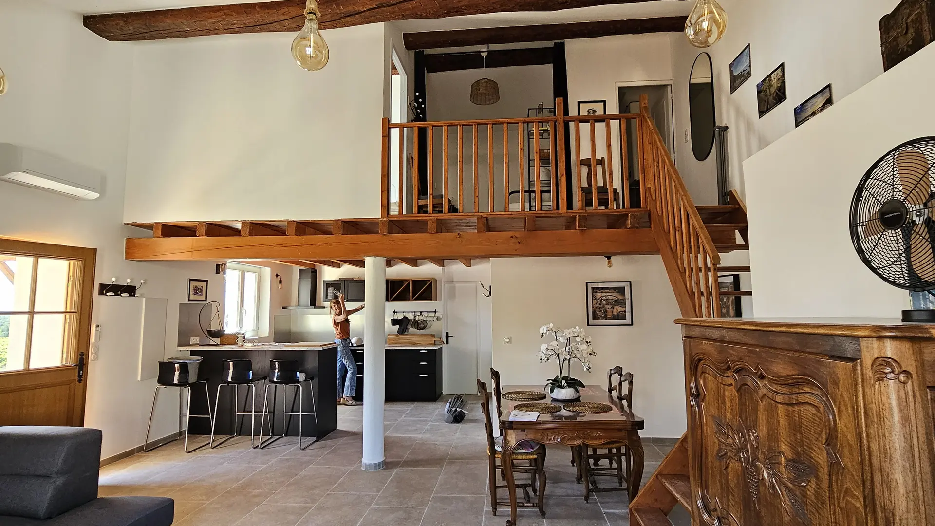Im Außenbereich gibt es eine Steckdose für Elektrofahrzeuge und einen kostenlosen Privatparkplatz . Terrasse mit Liegestühlen und Außentisch. Im Inneren finden Sie eine große moderne Einbauküche, einen Wohn- und Essbereich sowie ein Badezimmer mit geräumiger ebenerdiger Dusche. Auf dem Zwischengeschoss 1 Schlafzimmer mit einem 160 cm breiten Bett, 1 Nische bestehend aus einem Sofa, das in ein 90 cm oder 140 cm breites Bett umgewandelt werden kann, und ein separates WC. Sorgfältig dekoriert mit wunderschönen, unveröffentlichten Fotos zur Geschichte des Gutes oder des Weinbergs. Klimaanlage in der Unterkunft. Aus ökologisch verantwortungsvollen Gründen gewährt Ihnen der Winzer privilegierten Zugang zur Waschmaschine im Keller, die den Ferienhäusern vorbehalten ist. Sie können die Gelegenheit nutzen, sich zu entspannen, seine Produktion zu probieren und über seine Technik zu sprechen. Optionales Bett- und Badezimmerwäscheset.