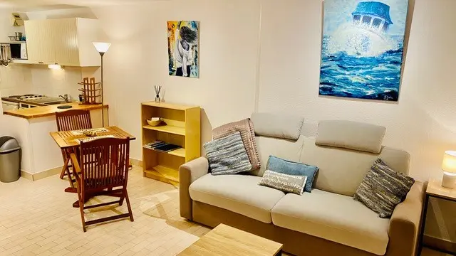 Das Studio mit Meerblick ist mit einer Veranda, einer umkehrbaren Klimaanlage und kostenlosem WLAN ausgestattet. Es verfügt über eine Waschmaschine und einen Geschirrspüler.