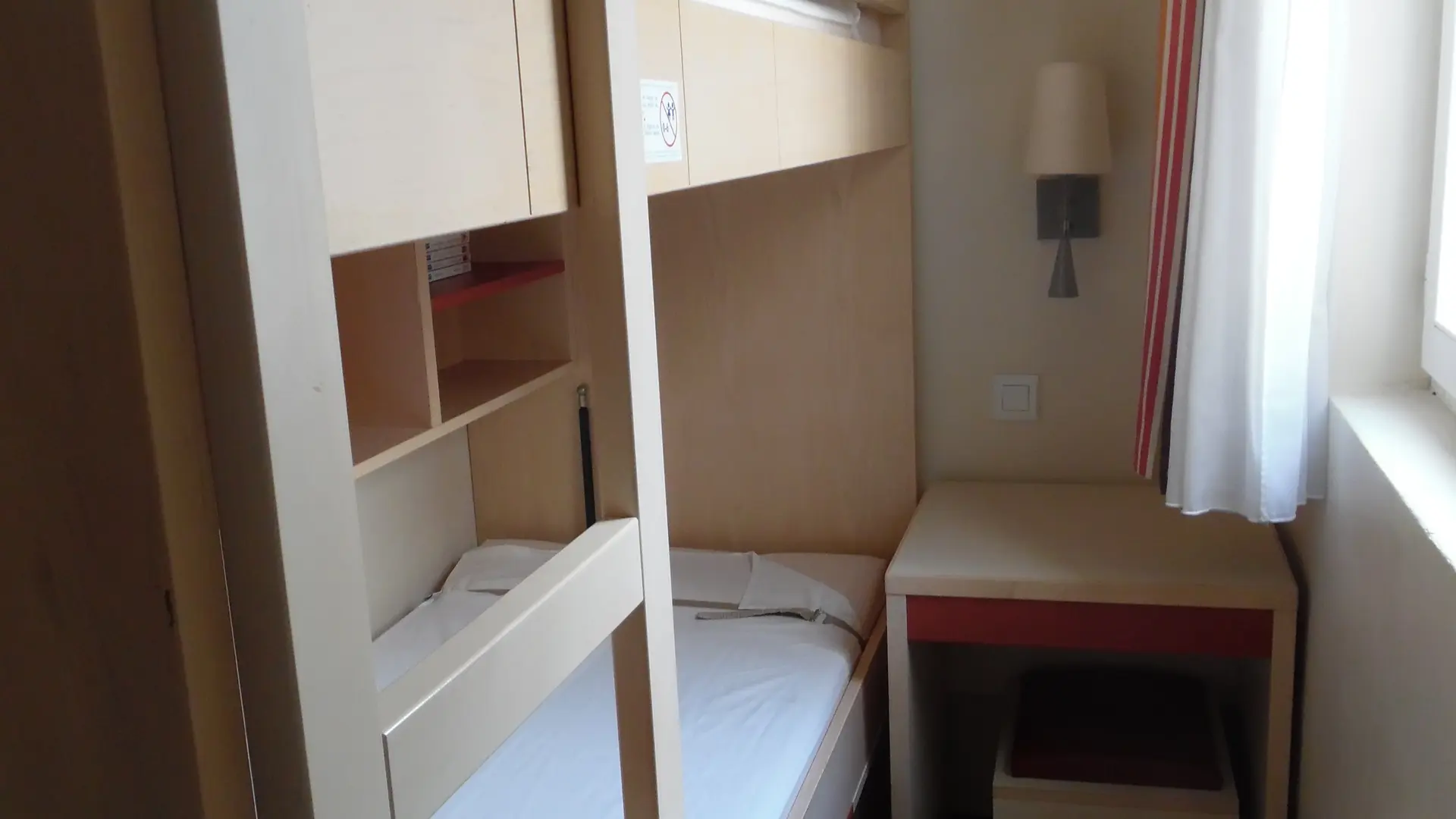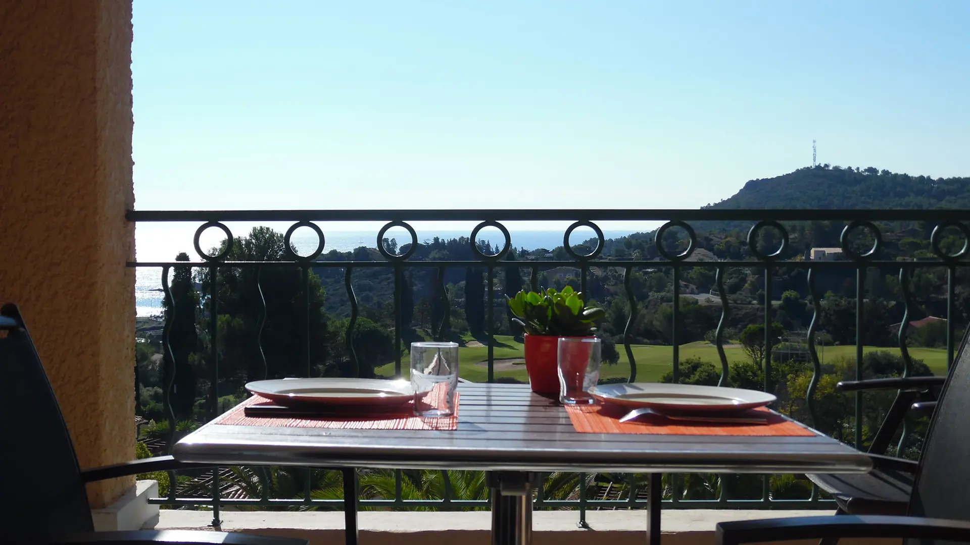 Studio in Südlage, durchgehend, mit unabhängiger Kabine, Panoramablick auf die Bucht von Agay und das Meer, im 1. Stock, im Dorf des mediterranen Typs Pierre & Vacances Resorts in AGAY - ST RAPHAEL, 4/5 Personen (Regenschirmbett zur Verfügung + Kinderstuhl 6 - 36 Monate).