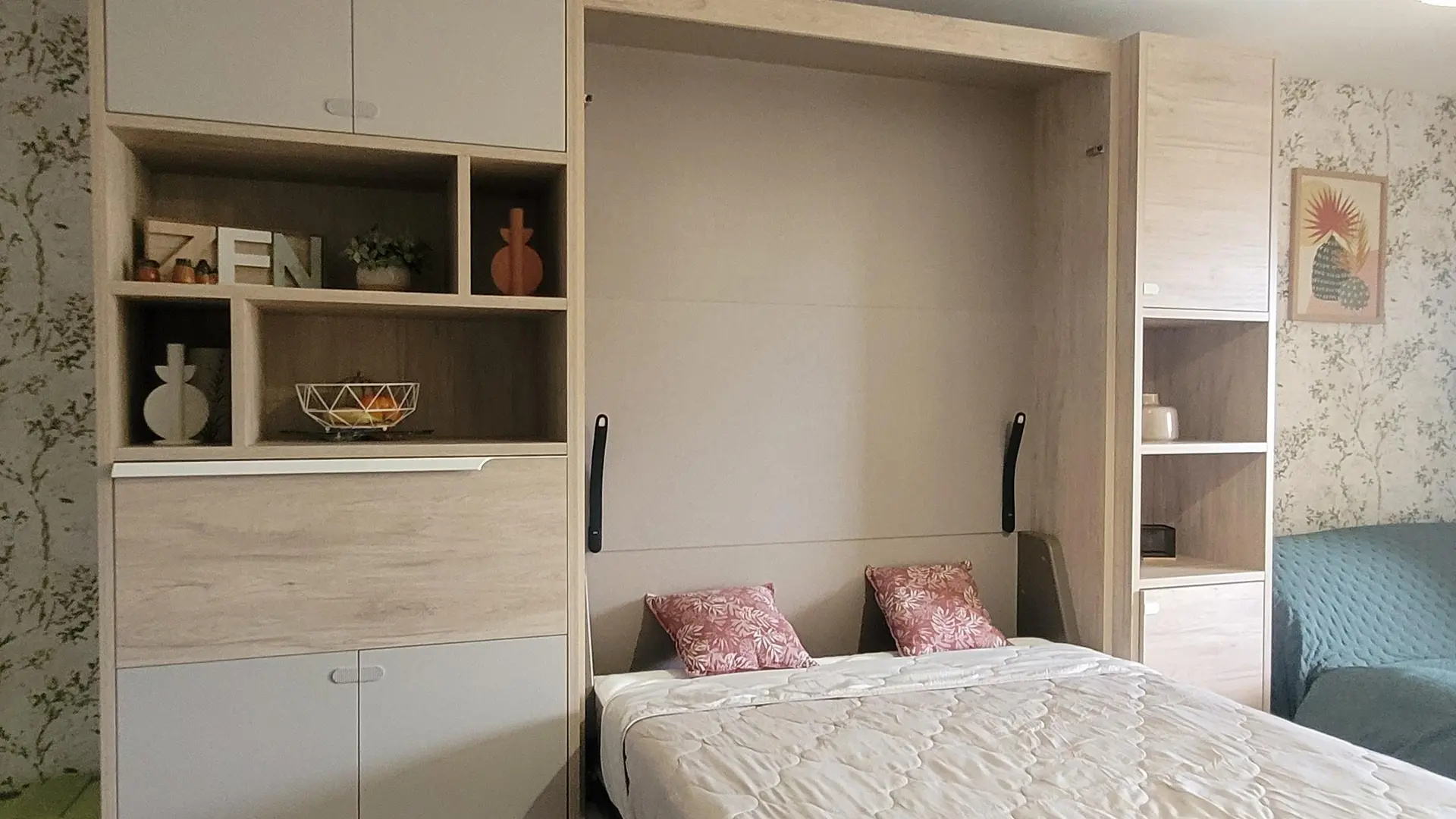 Ziemlich großes Studio mit allem Komfort in der Nähe von Meer und Geschäften. Privater Parkplatz, erster Stock.