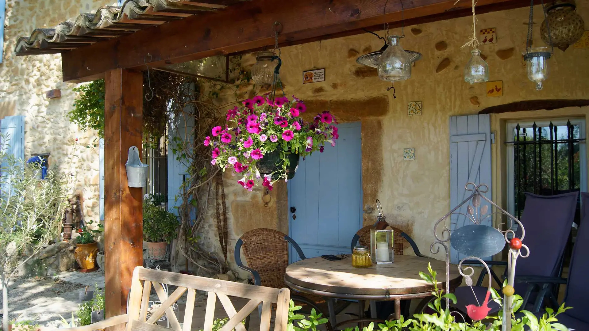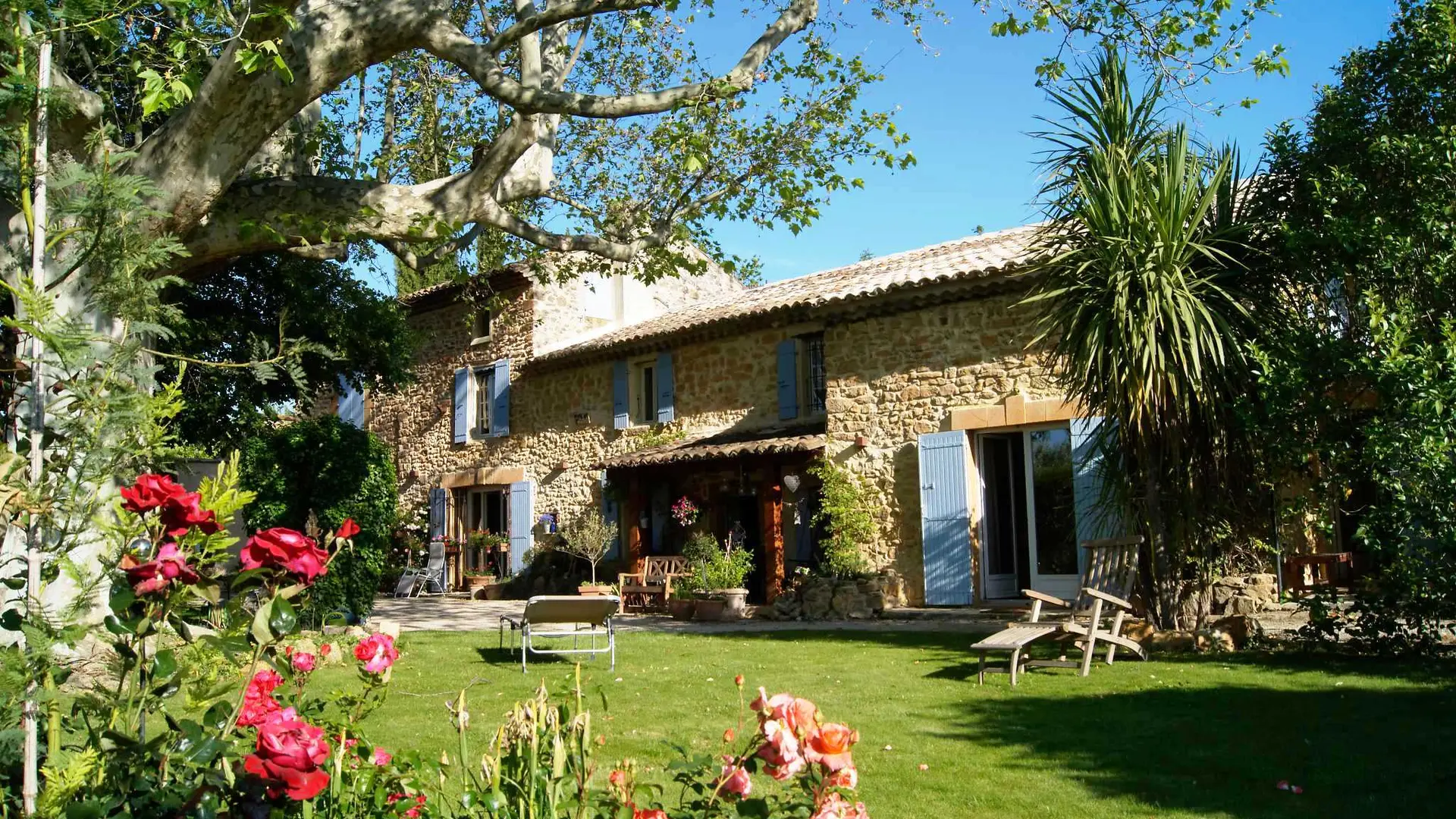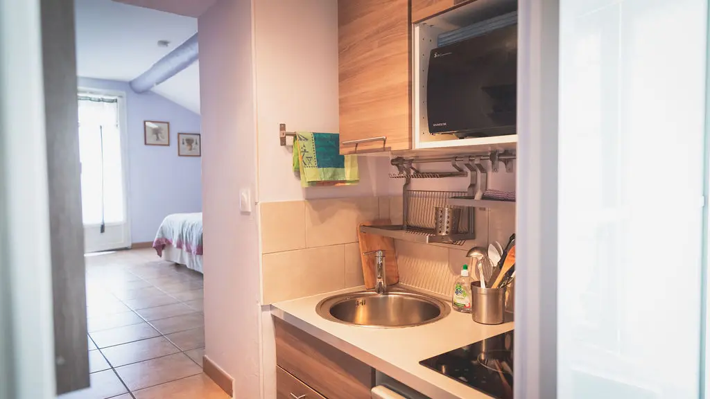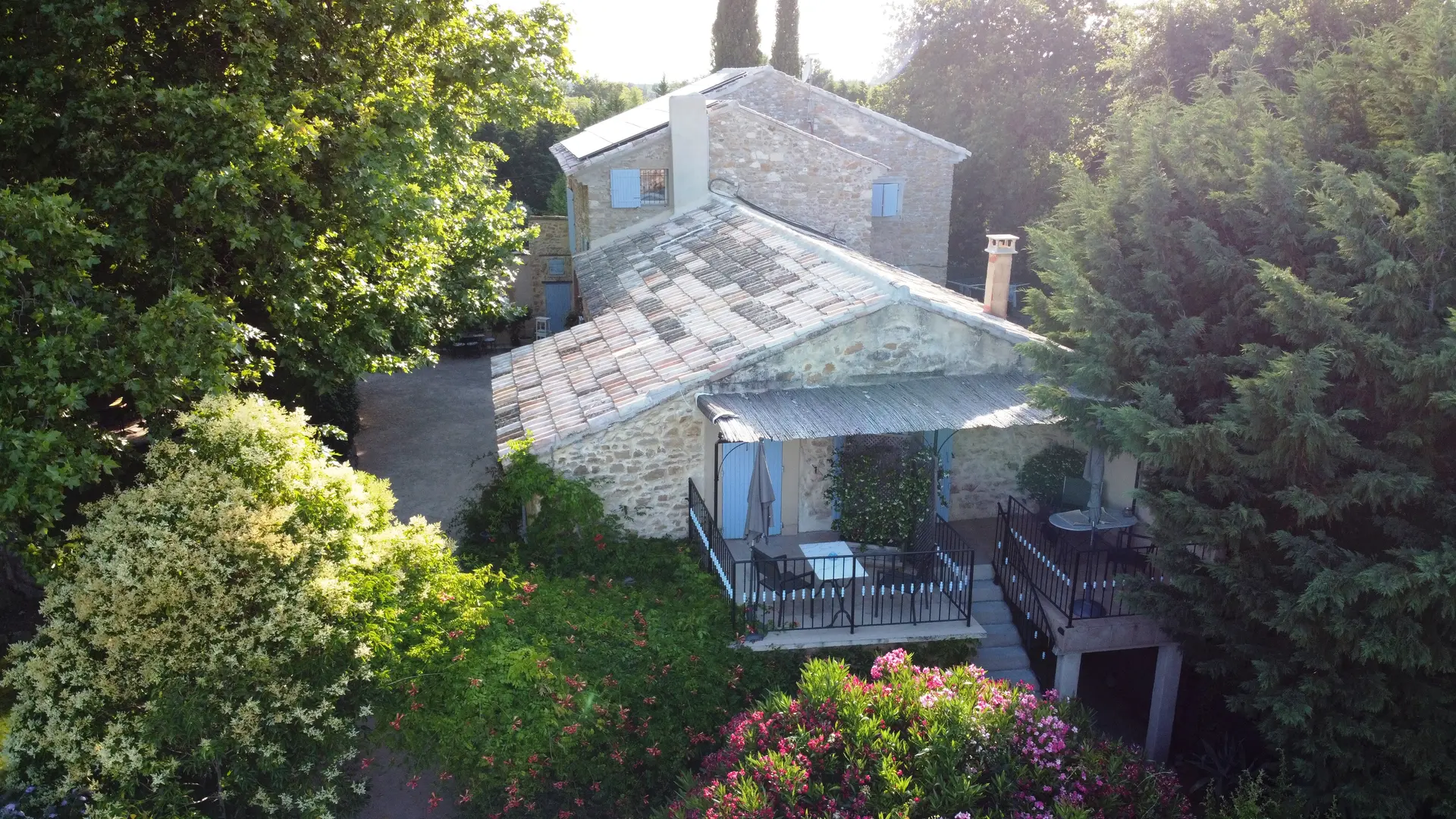 Diese Unterkunft befindet sich am Ende des Mas, im 1. Stock mit einem eigenen Eingang. Von der Terrasse aus, die mit einer Pergola überdacht und mit einem Tisch und Stühlen ausgestattet ist, haben Sie einen herrlichen Blick auf den Mont Ventoux und die Dentelles de Montmirail. Die Via Venaissia ist 100 m entfernt.