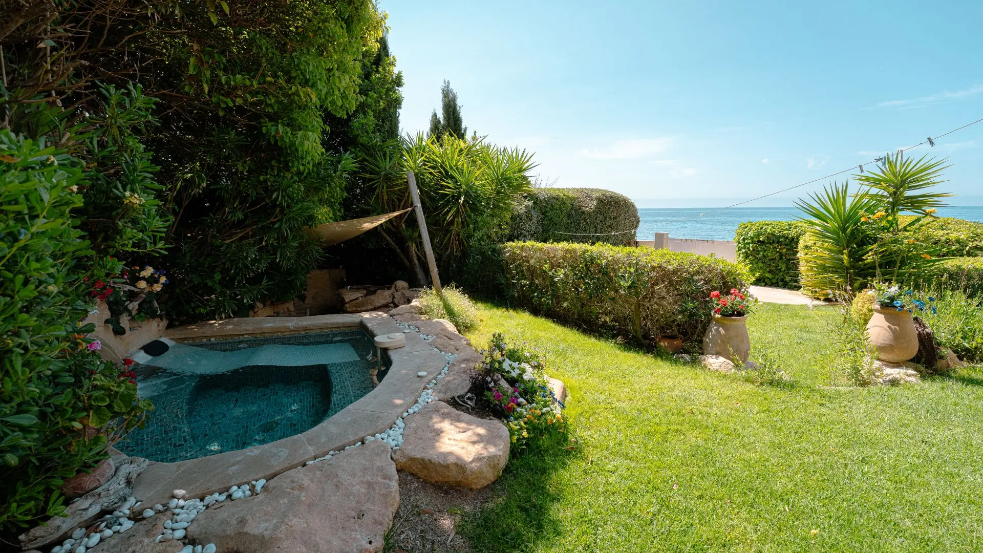 Prächtige freistehende Villa direkt am Meer für 6 Personen und 2 Kinder mit allem Komfort, Spa, Balkon, Terrasse, Garten, Grill und atemberaubendem Meerblick.