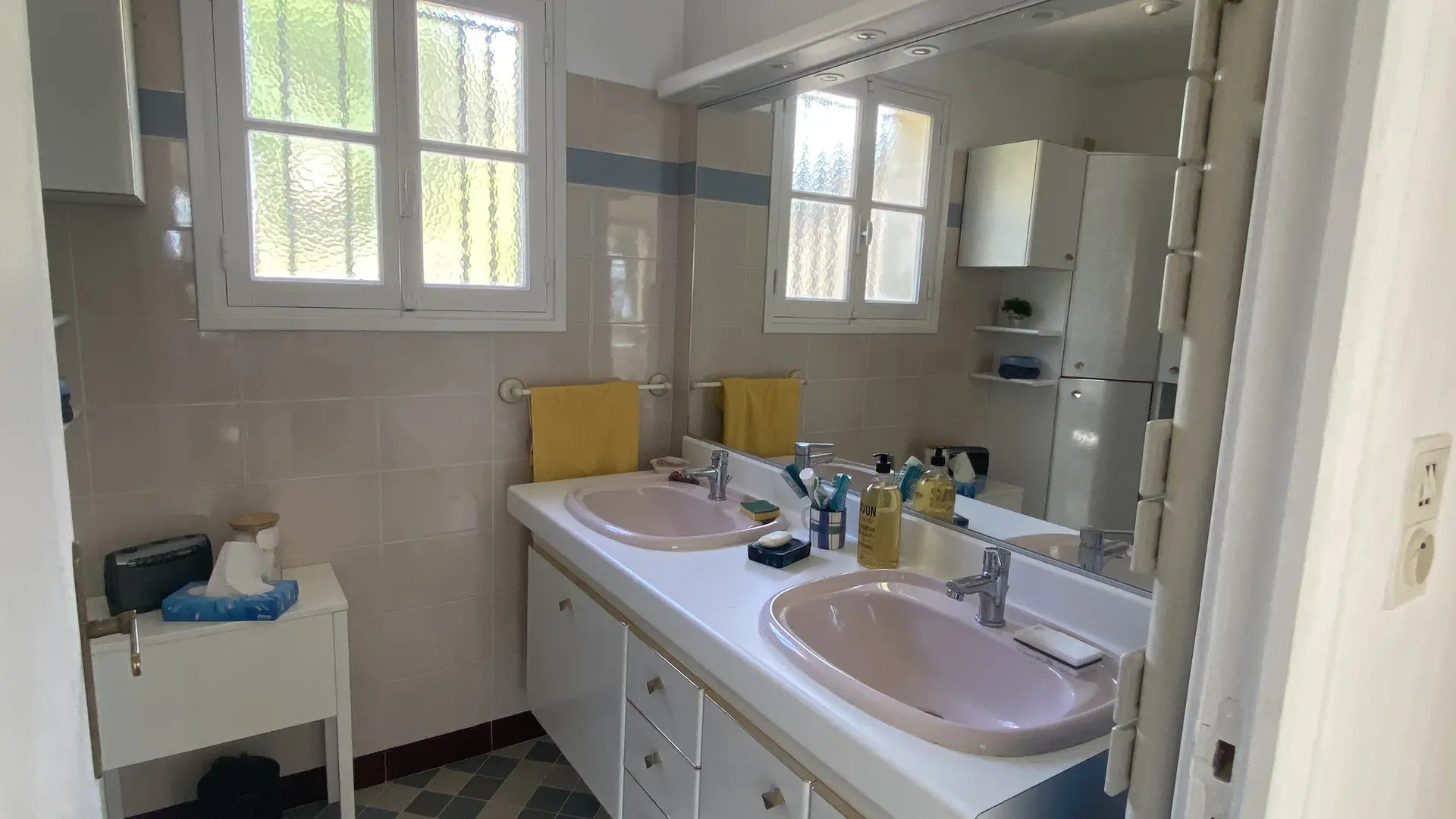 -2 Badezimmer (1 mit Dusche und 1 mit Badewanne und Doppelwaschbecken).