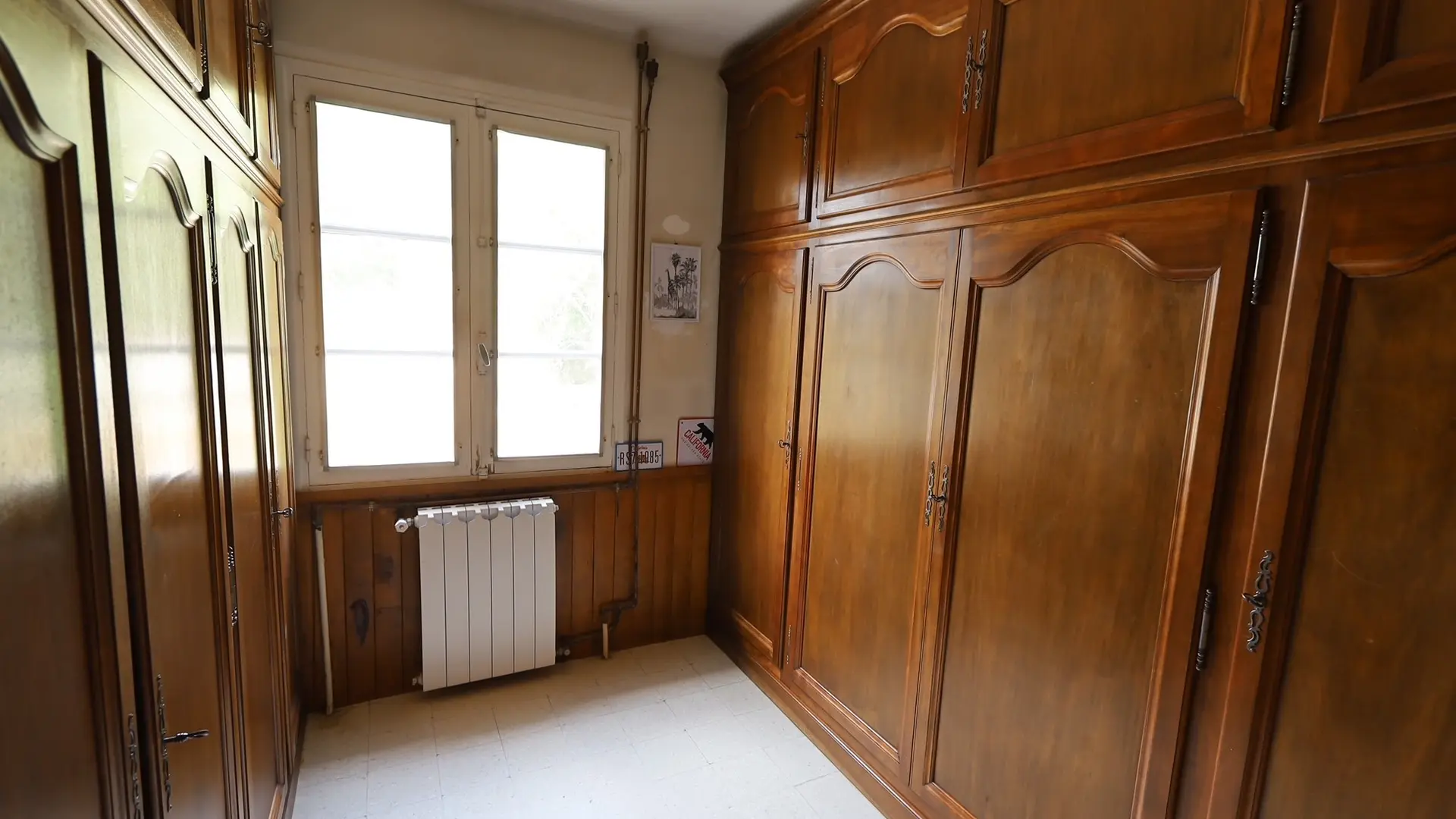 - 1 Ankleidezimmer mit Fenster, das genutzt werden kann, um ein Babybett oder eine Matratze für ein kleines Kind aufzustellen.