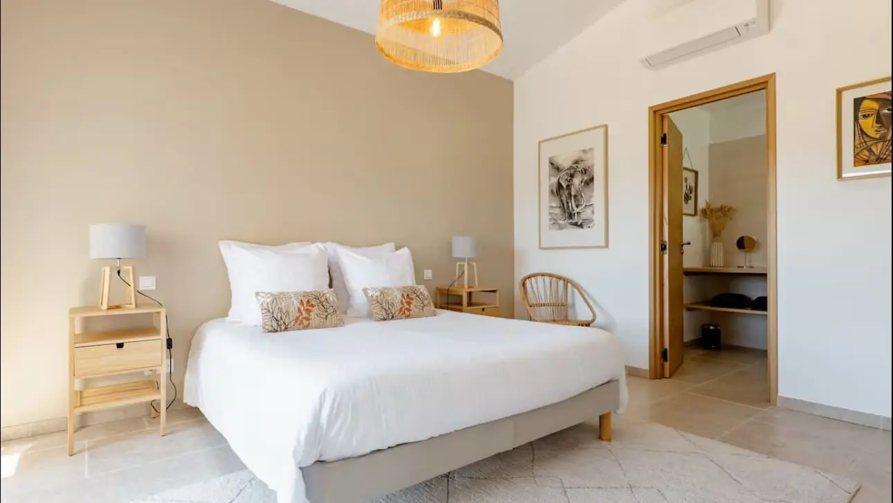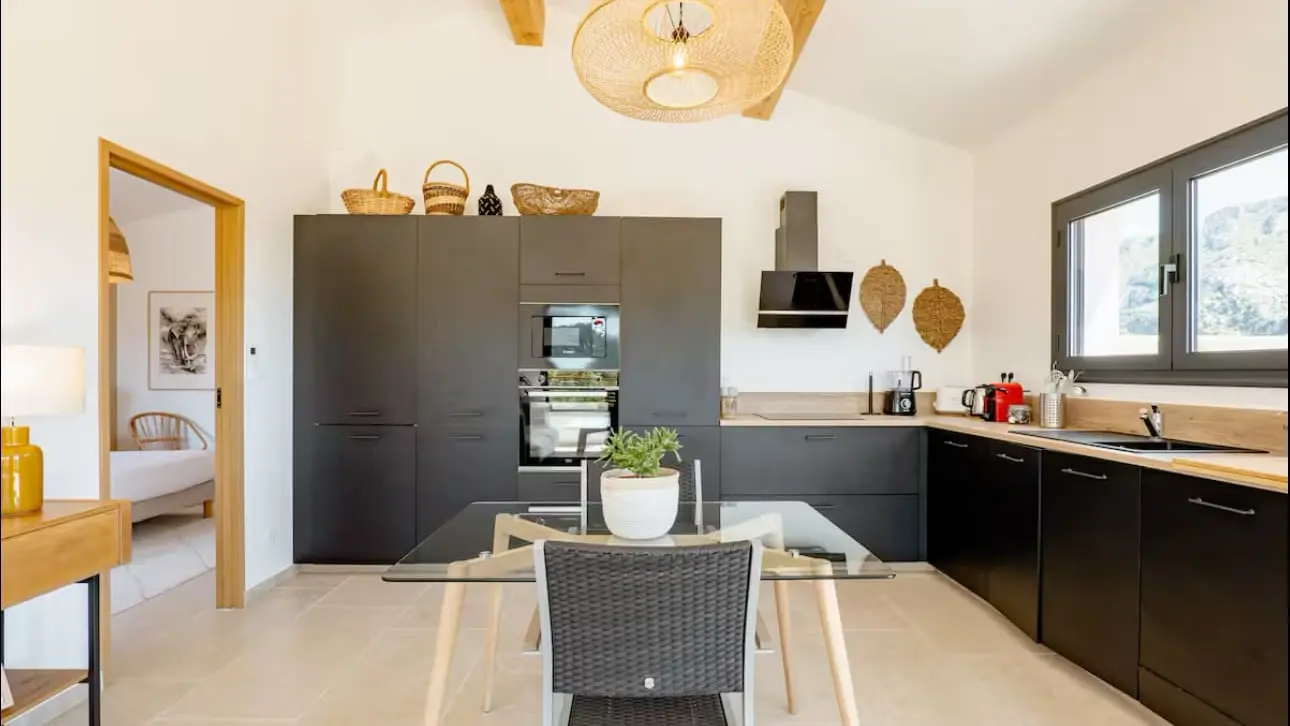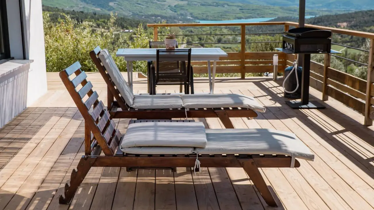 Im Regionalen Naturpark Verdon, am Rande von Moustiers-Sainte-Marie. Dieses wunderschöne, vollständig eingezäunte Anwesen liegt in einer außergewöhnlichen Umgebung, umfasst zwei nebeneinander liegende Gîtes und verfügt über einen herrlichen Blick auf den See von Sainte-Croix. Das 55 m² große, vollständig gepflegt dekorierte Ferienhaus ist geräumig und sehr hell, ohne Gegenüber, ideal für einen ruhigen Aufenthalt zu zweit. Privater Garten zur Verfügung. Auf der 1. Ebene, Zugang über eine Außentreppe. Private Holzterrasse mit Garten- und Entspannungsmöbeln, nicht zu vergessen das vollständig private Spa. Vollständig ausgestattete Küche, Wohnzimmer und Entspannungsbereich mit sehr bequemer Couch, Flachbildfernseher und Soundbar. Ein großes Schlafzimmer mit einem 160 cm breiten Bett und angrenzendem Badezimmer. Ein separates WC. Das Bett wird bei Ihrer Ankunft gemacht, Handtücher und Haushaltswäsche werden gestellt. Die Reinigung ist im Preis inbegriffen. Umkehrbare Klimaanlage in jedem Zimmer. Alle Nebenkosten inbegriffen.