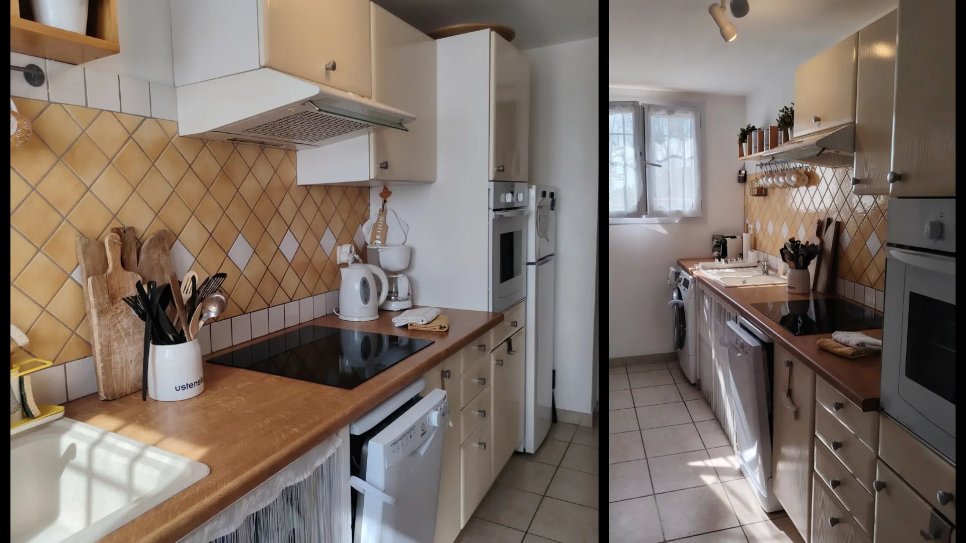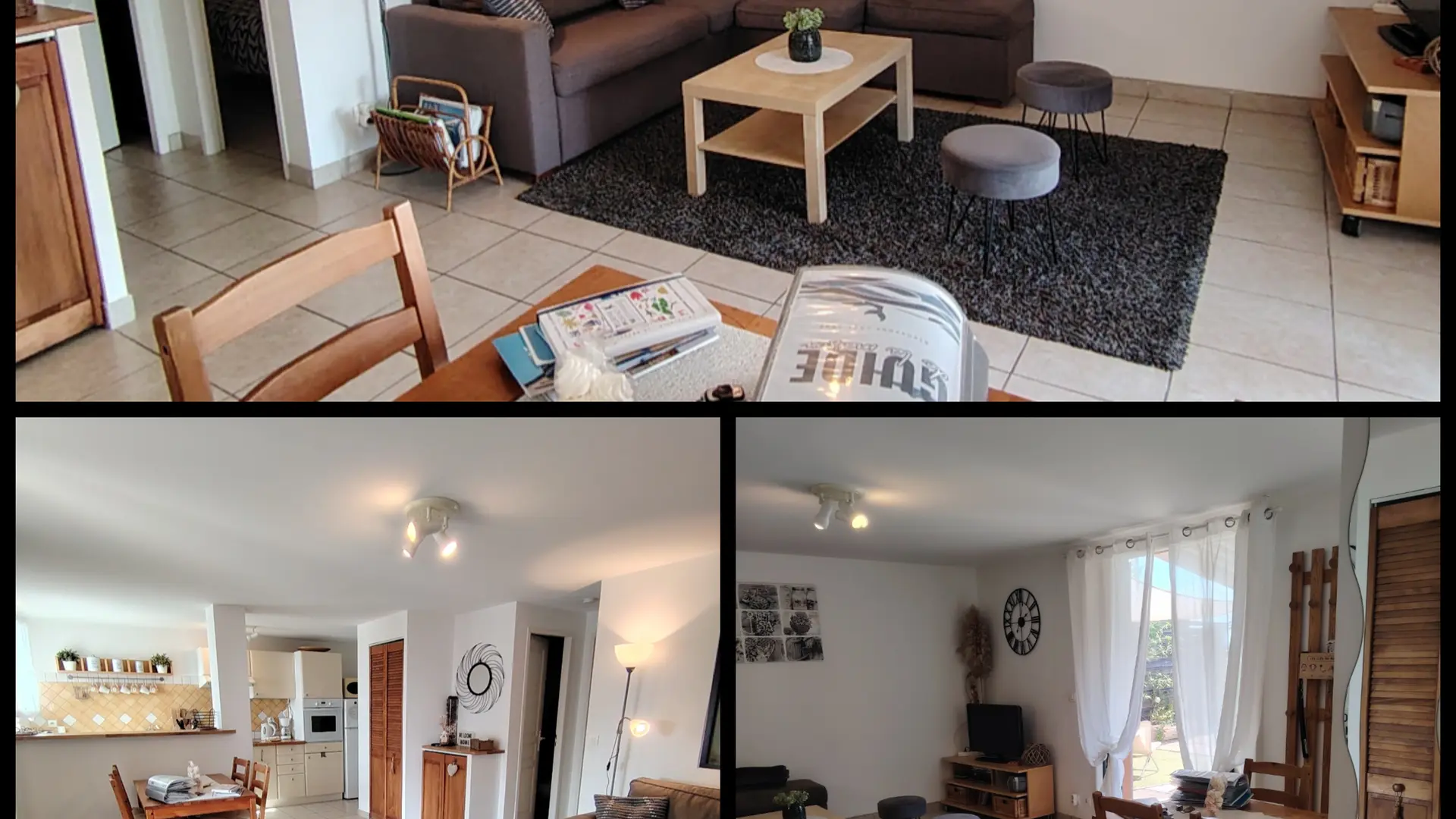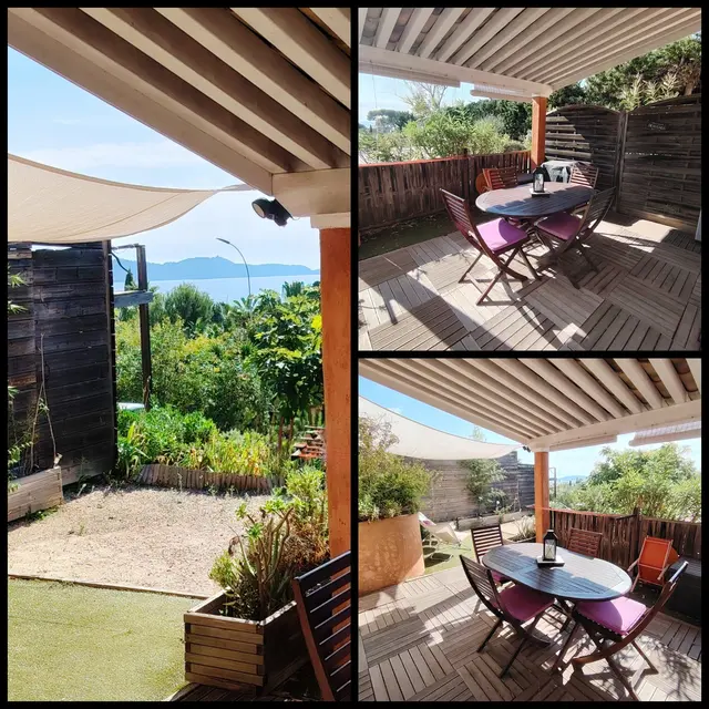 T3 - unterer Teil einer Villa im Gartengeschoss, gut dekoriert und sehr gut ausgestattet. Parkplatz im Garten. 2 Schlafbereiche ohne Fenster. Geräumiges Wohnzimmer. Überdachte Terrasse. Zugänglich für Personen mit eingeschränkter Mobilität, aber kein Rollstuhl. Keine Klimaanlage, aber Ventilatoren.