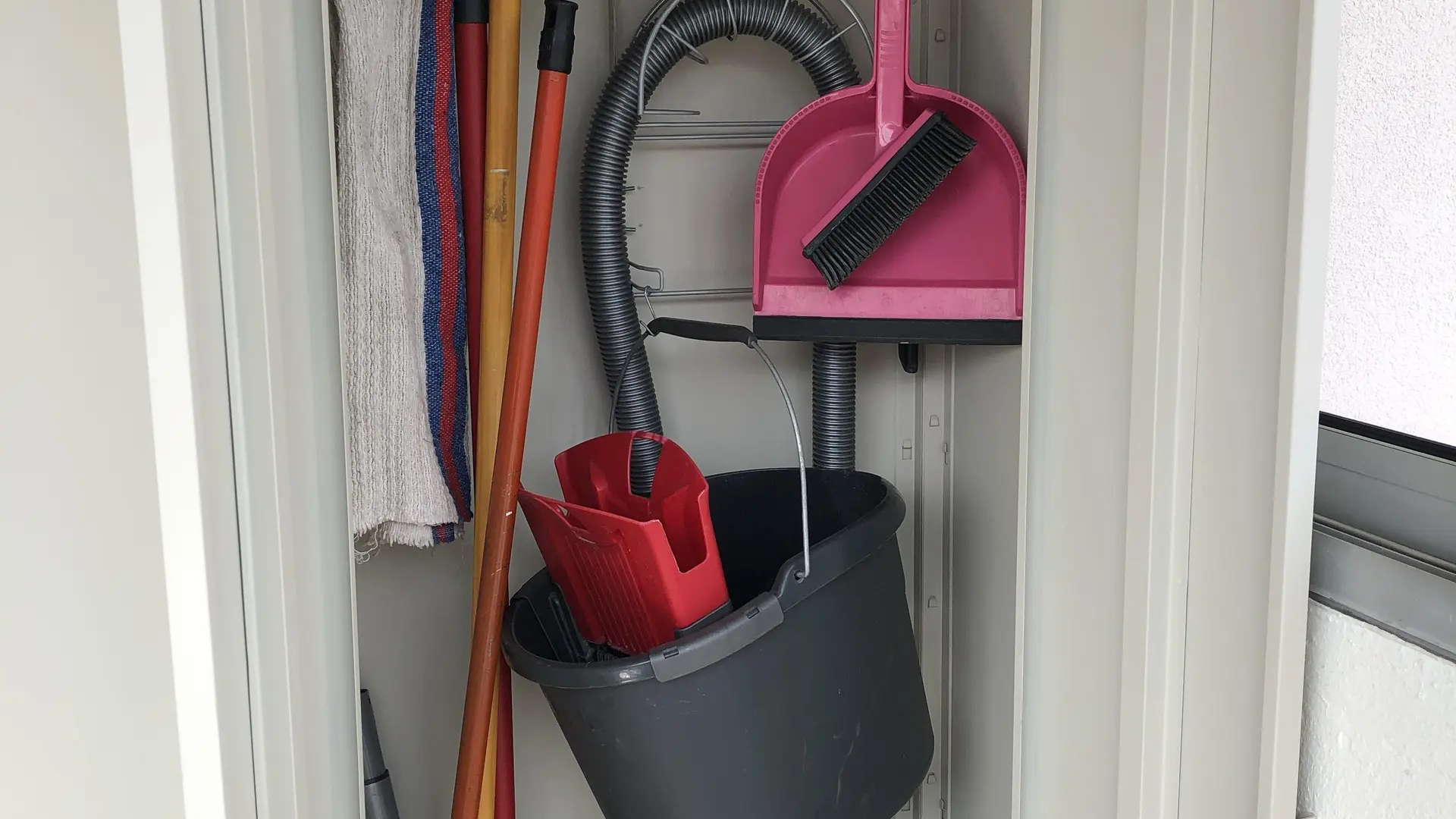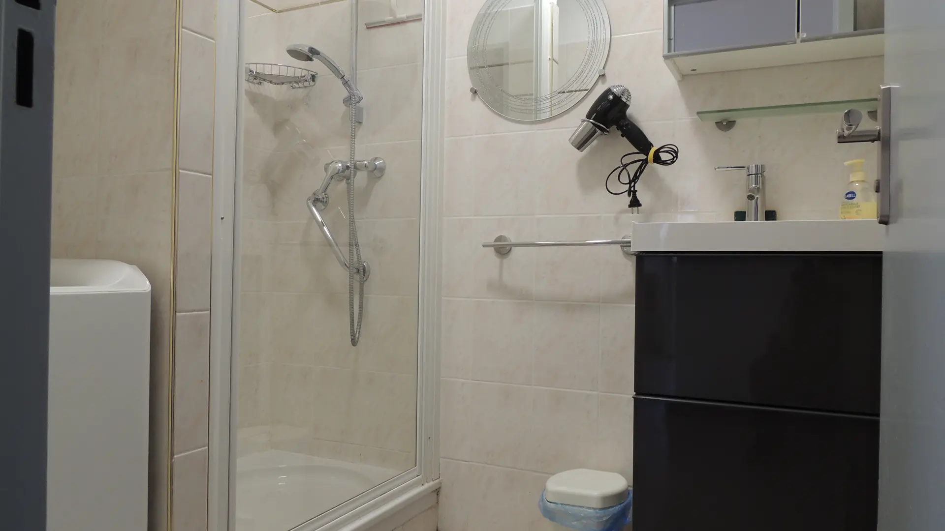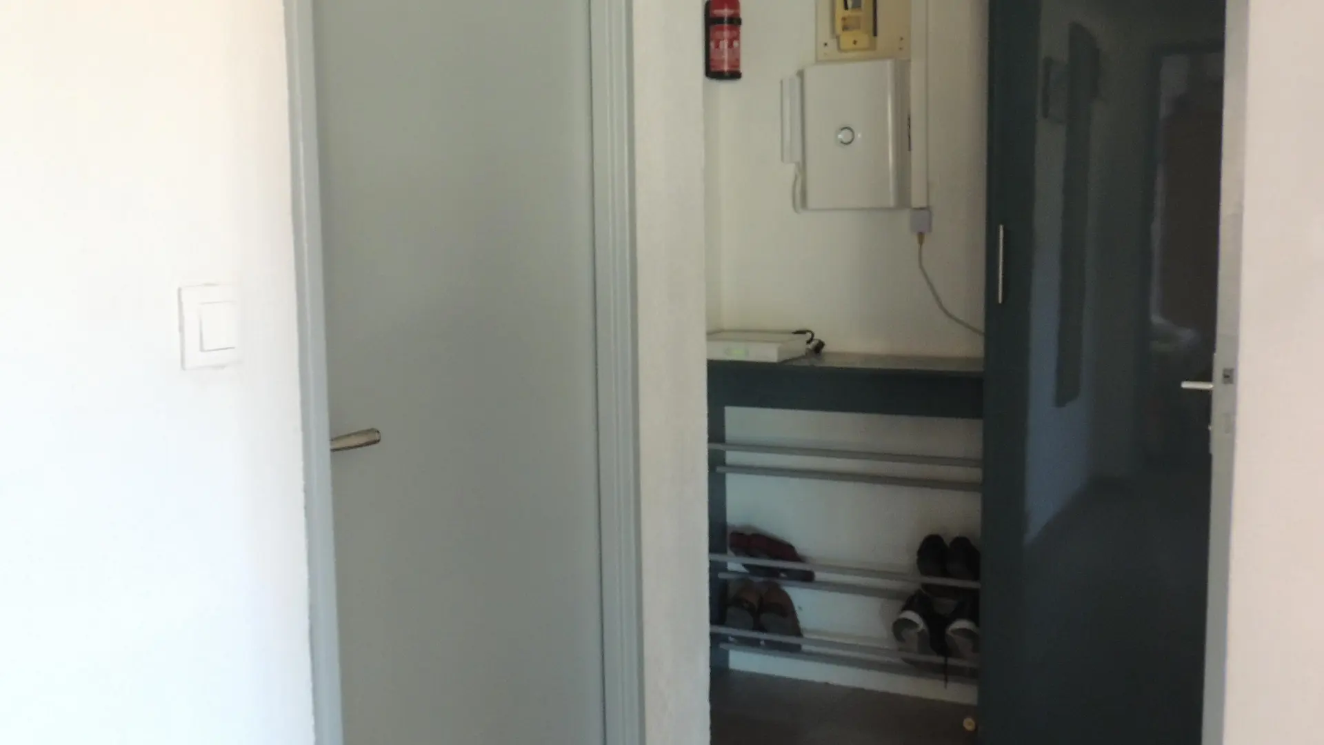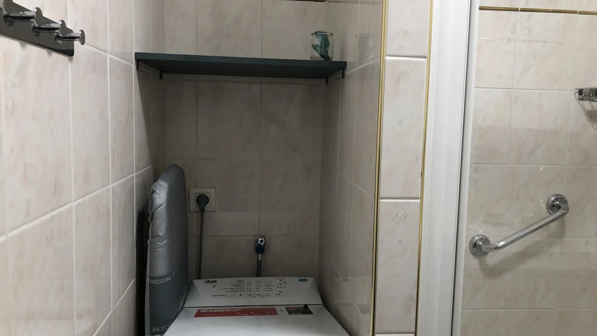 Eingangshalle: Schrank - Schuhschrank - Kleiderstange Badezimmer: Dusche - Handtuchtrockner - Waschbecken (2 Schubladen) - Toilettenschrank - Waschmaschine.