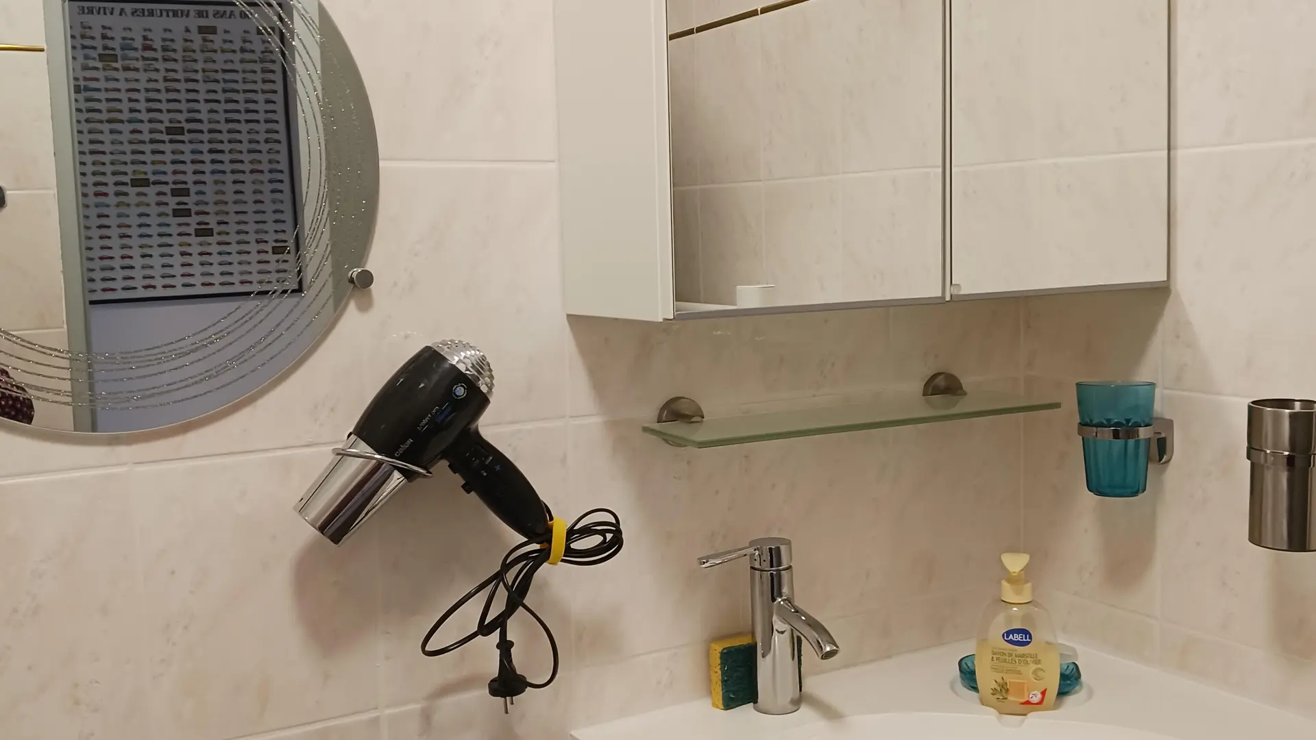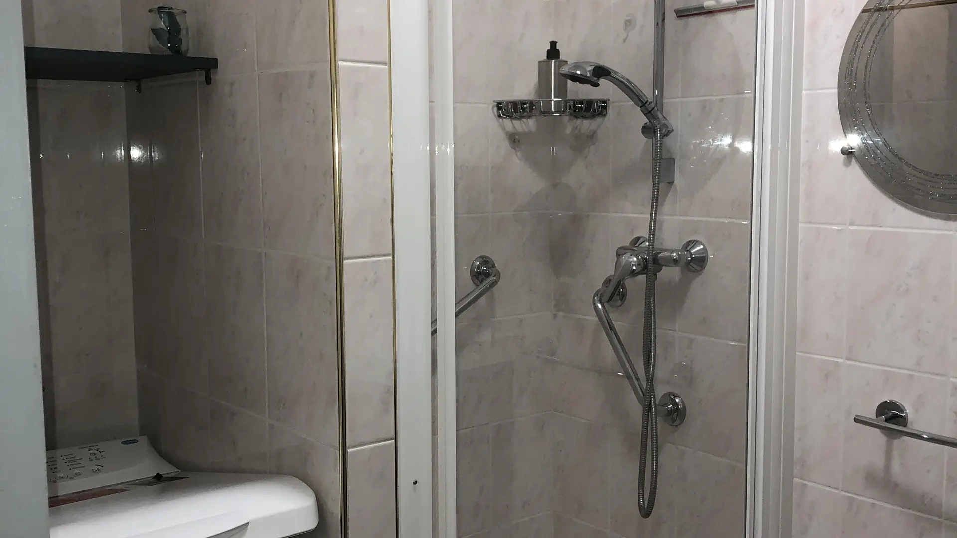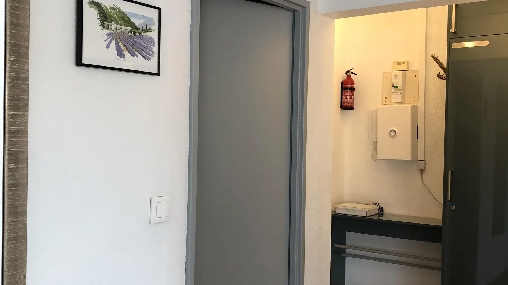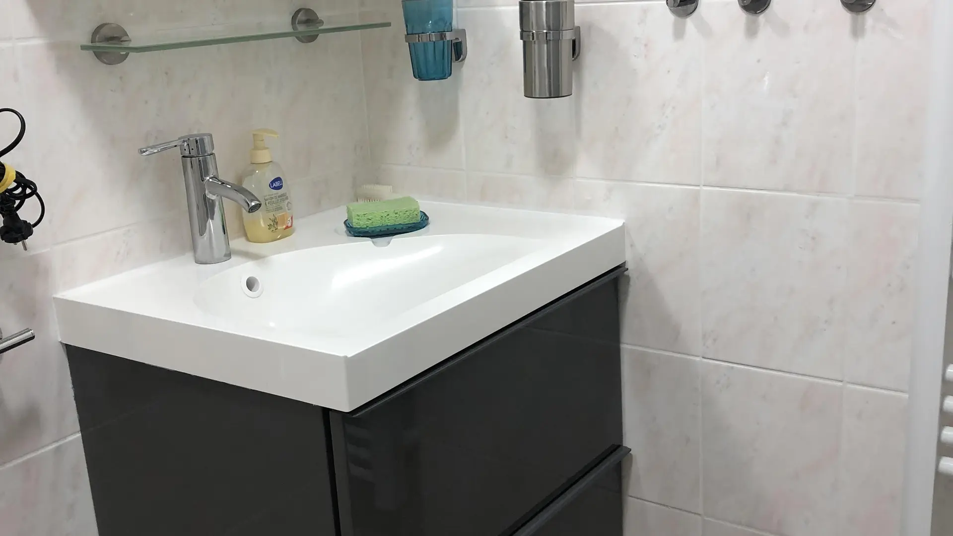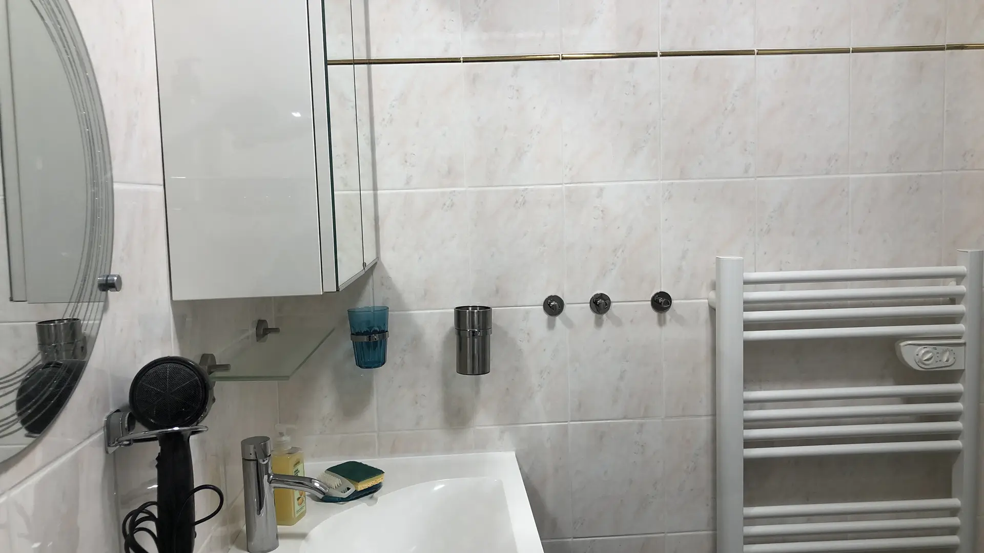 Eingangshalle: Schrank - Schuhschrank - Kleiderstange Badezimmer: Dusche - Handtuchtrockner - Waschbecken (2 Schubladen) - Toilettenschrank - Waschmaschine.