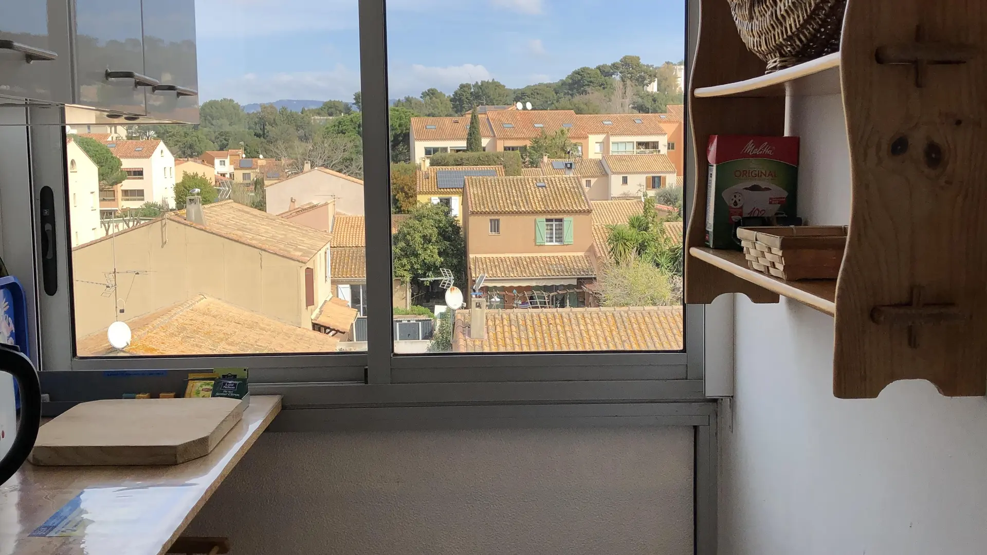 Kochecke mit Fenstertür mit Doppelverglasung, die auf eine durch ein Schiebefenster geschlossene Loggia führt : Alle notwendigen Geräte: Geschirrspüler, Mikrowelle, Induktionskochfeld, Backofen, Kühl-/Gefrierschrank, Nespresso (Kapseln), Kaffeemaschine, Toaster, Wasserkocher, Mixer, Rührgerät, vollständiges Geschirr und Kochgeschirr für die Zubereitung von leckeren Gerichten.