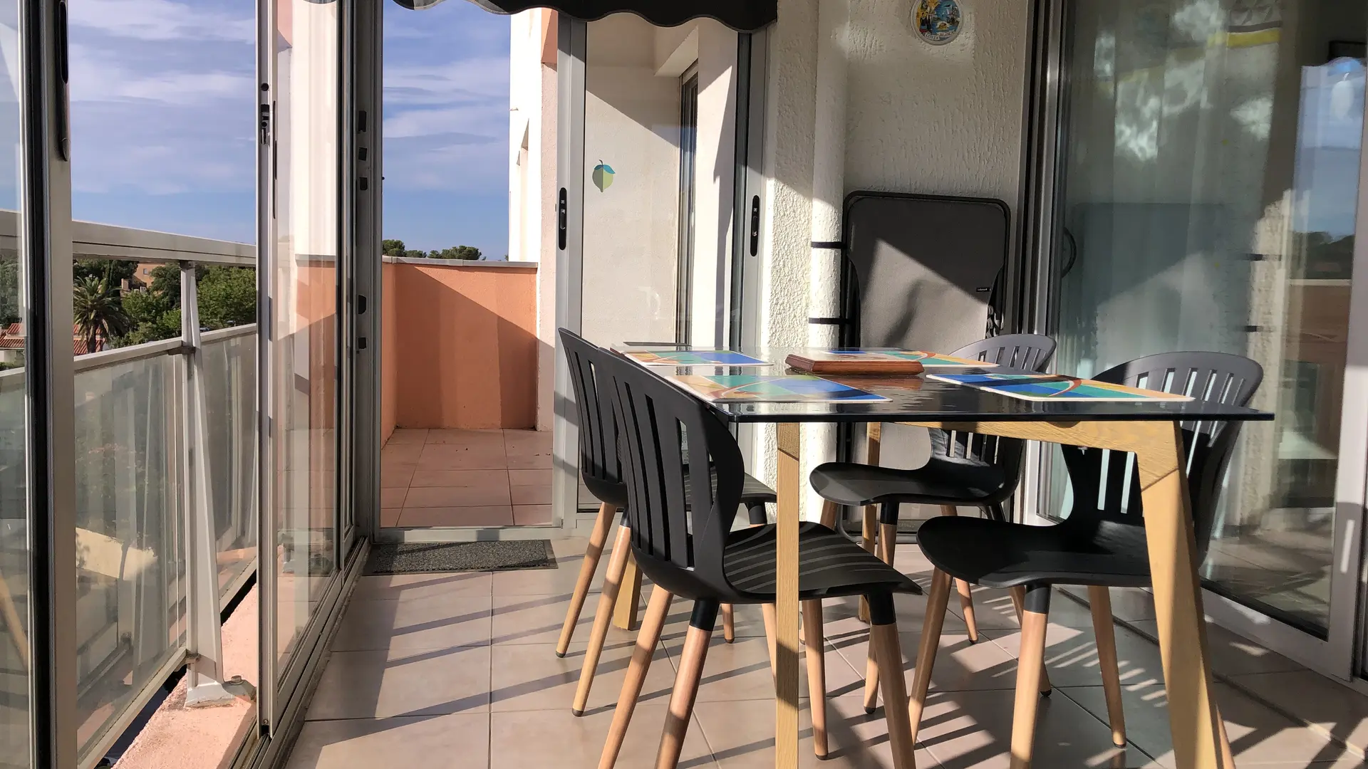Die Terrasse ist mit dem Balkon des Schlafzimmers verbunden.