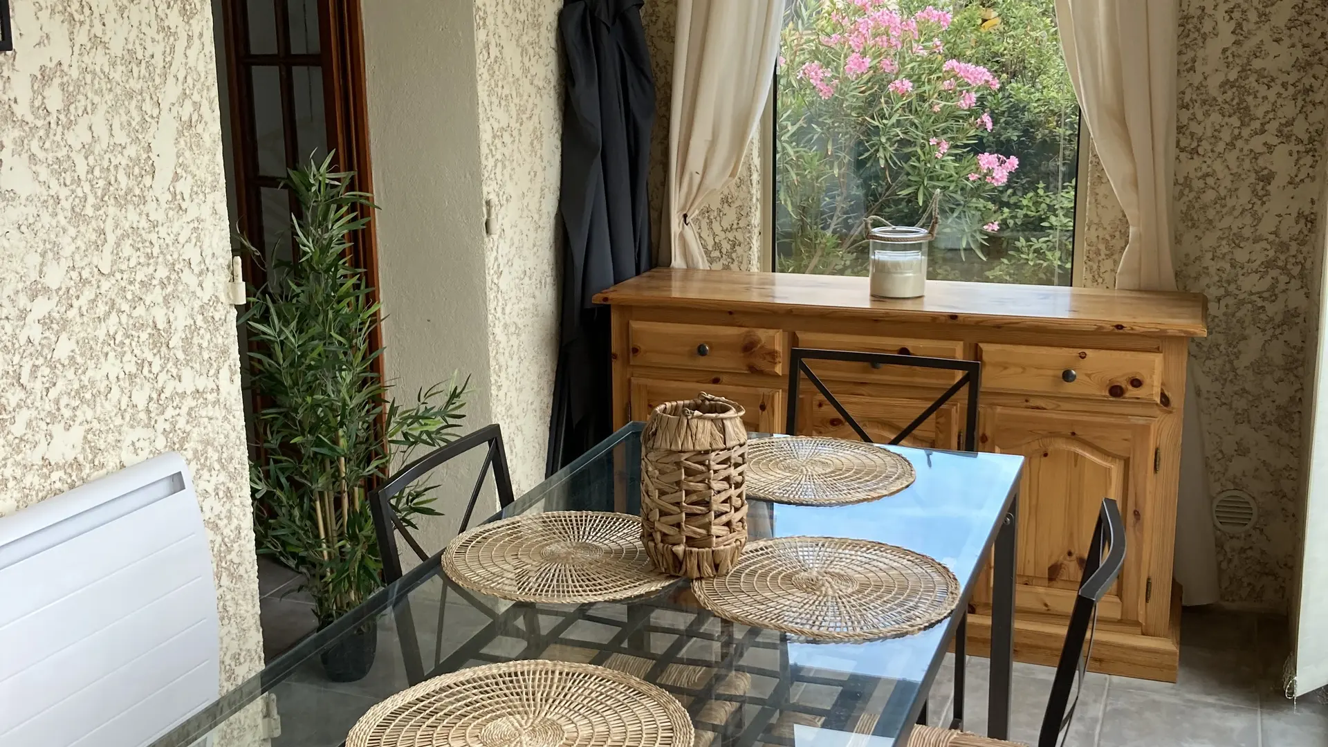 Auf der Loggia können Sie Ihre Mahlzeiten bei Mistral oder Regen einnehmen und gleichzeitig den sonnigen Garten genießen, der mit Liegestühlen, Gartenmöbeln und einem Tisch für draußen ausgestattet ist.