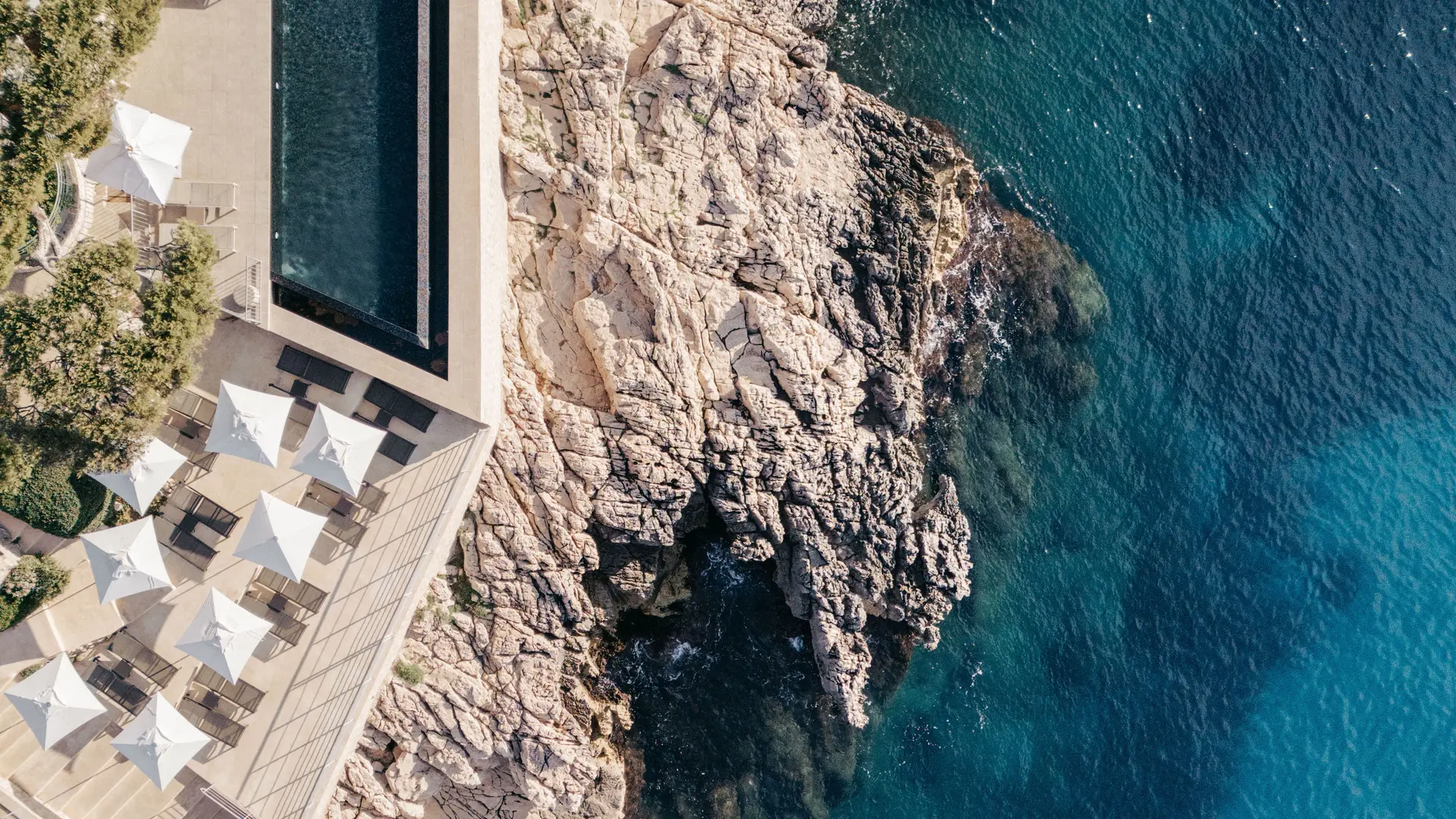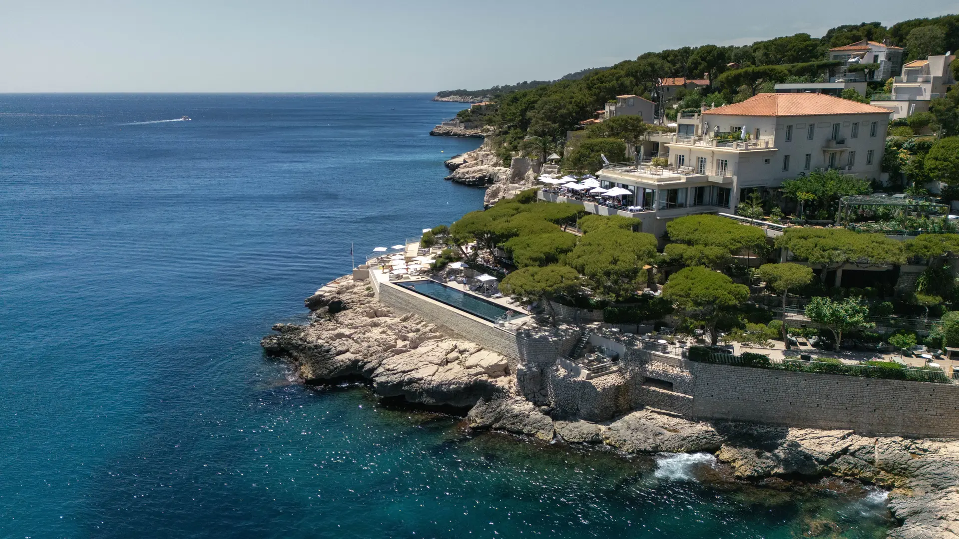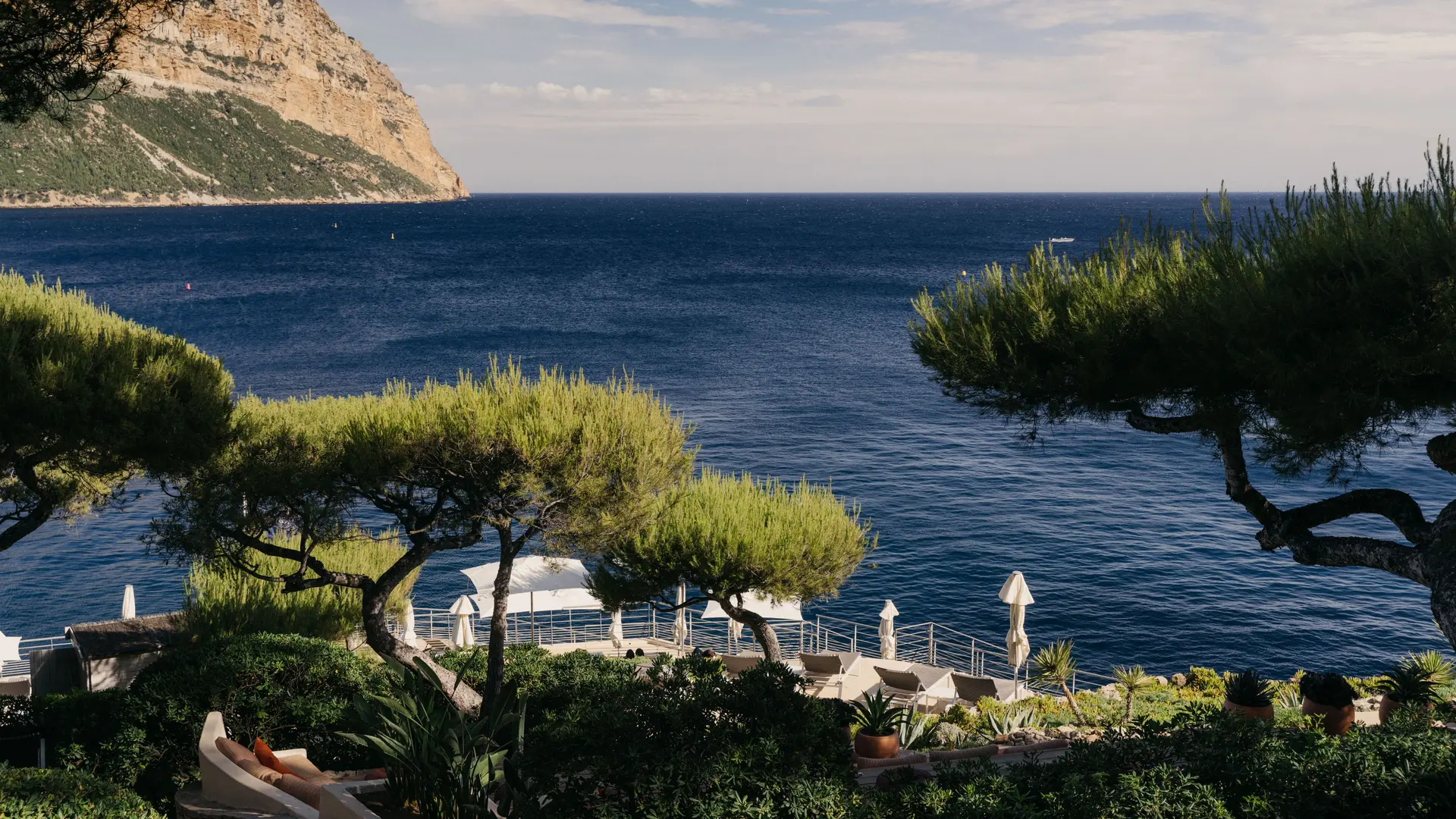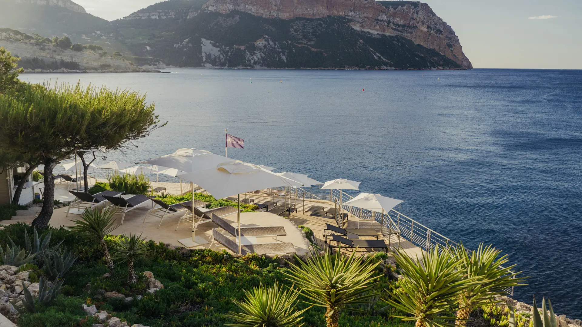 Das Hotel Les Roches Blanches zwischen dem blauen Himmel des Midi und dem türkisfarbenen Wasser des Nationalparks Calanques, exotischem Grün und Pinien, warmem Wind, Wellen und Schatten... In diese spektakuläre Naturkulisse fügt sich das legendäre Hotel von Cassis diskret ein. Die ehemalige Villa hat ihr Dekor aus den 1930er Jahren wiedergefunden und bietet eine subtile Mischung aus Luxus und Eleganz.