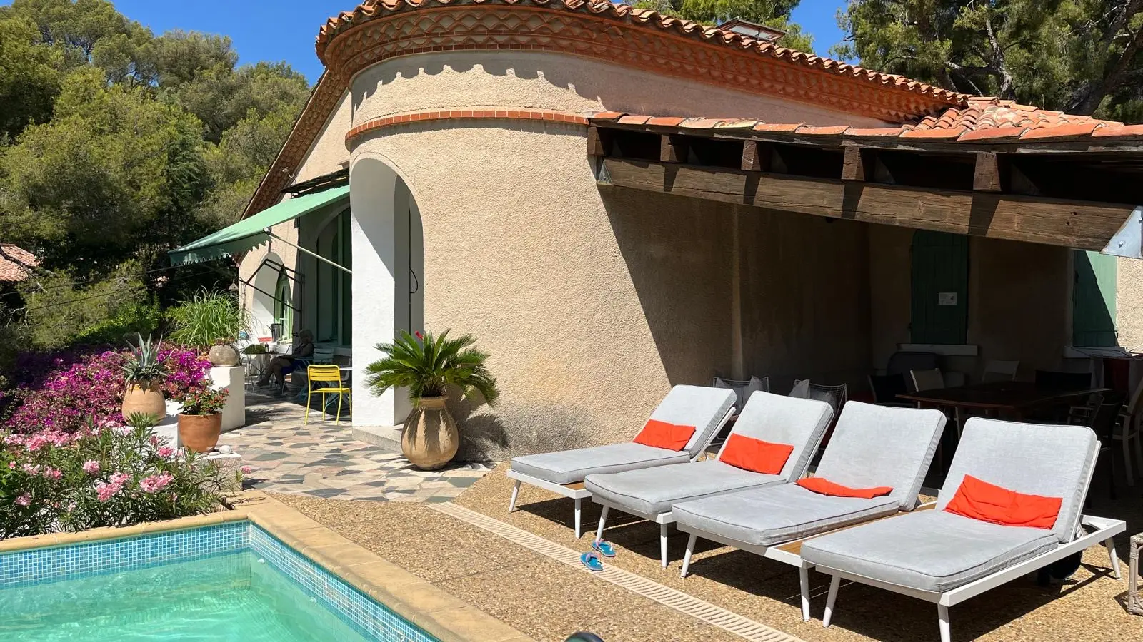 Wir empfangen Sie in einem Familienhaus am Pool oder am Kamin, in einer grünen Umgebung und ganz in der Nähe des Zentrums.