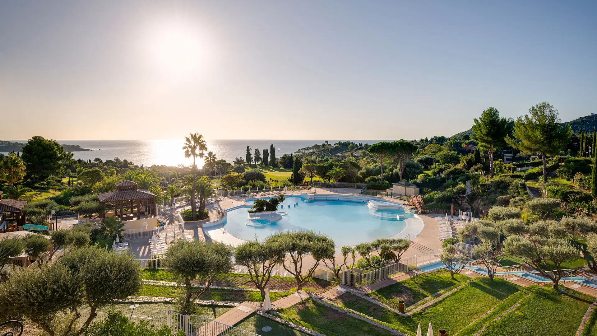 Blau- und Ockertöne, Loggien, Terrassen und Ziegeldächer - die Unterkünfte pflegen den warmen Stil des Südens. In einer grünen Umgebung, zwischen angelegten Gärten und den Greens des Golfplatzes, unter dem Himmel der Côte d'Azur und dem Mittelmeer am Horizont, bietet diese Anlage, die über der Bucht von Agay errichtet wurde, schöne Einblicke in das Land der Varois.