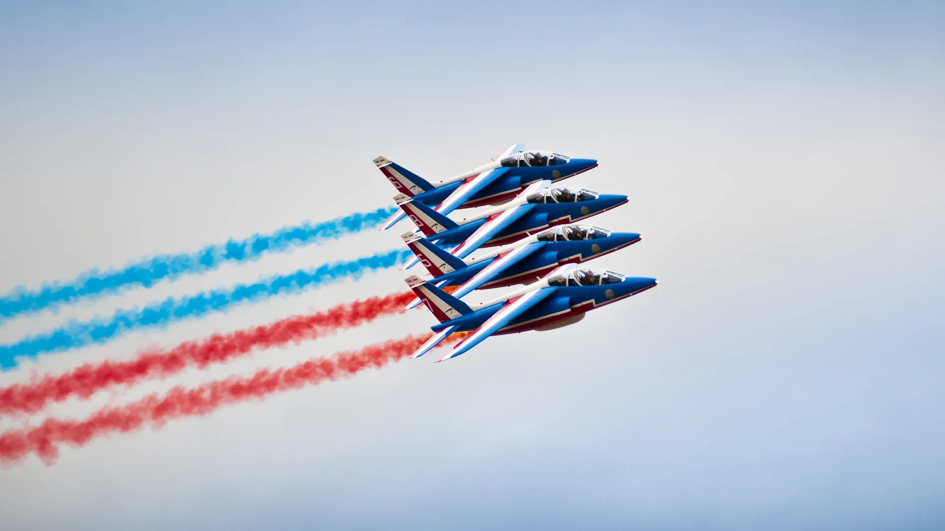 Groß und Klein werden ihre Augen in den Himmel richten, um die 8 Alphajets der Patrouille de France und ihre unumgänglichen Figuren zu bewundern, die sie bei 800 km/h und manchmal nur 2 Meter voneinander entfernt ausführen: Gänsehaut garantiert.