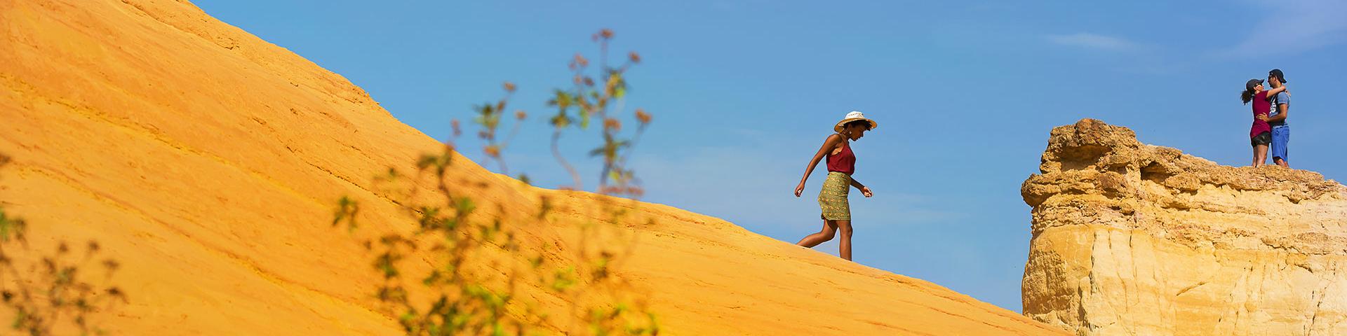 Mit dem Fahrrad unterwegs. Hier in der Provence bietet die Landschaft stets ein neues Gesicht. Radelt auf eurem Weg vorbei an gemütlichen Restaurants, reizenden Dörfern, Ockerfelsen, Flüssen und Schluchten und – natürlich – zahllosen Wein- und Olivenfeldern. Fühlt euch wie bei der Tour de France und bewältigt den Anstieg zum Mont Ventoux. Auf einem E-Bike ist alles möglich!