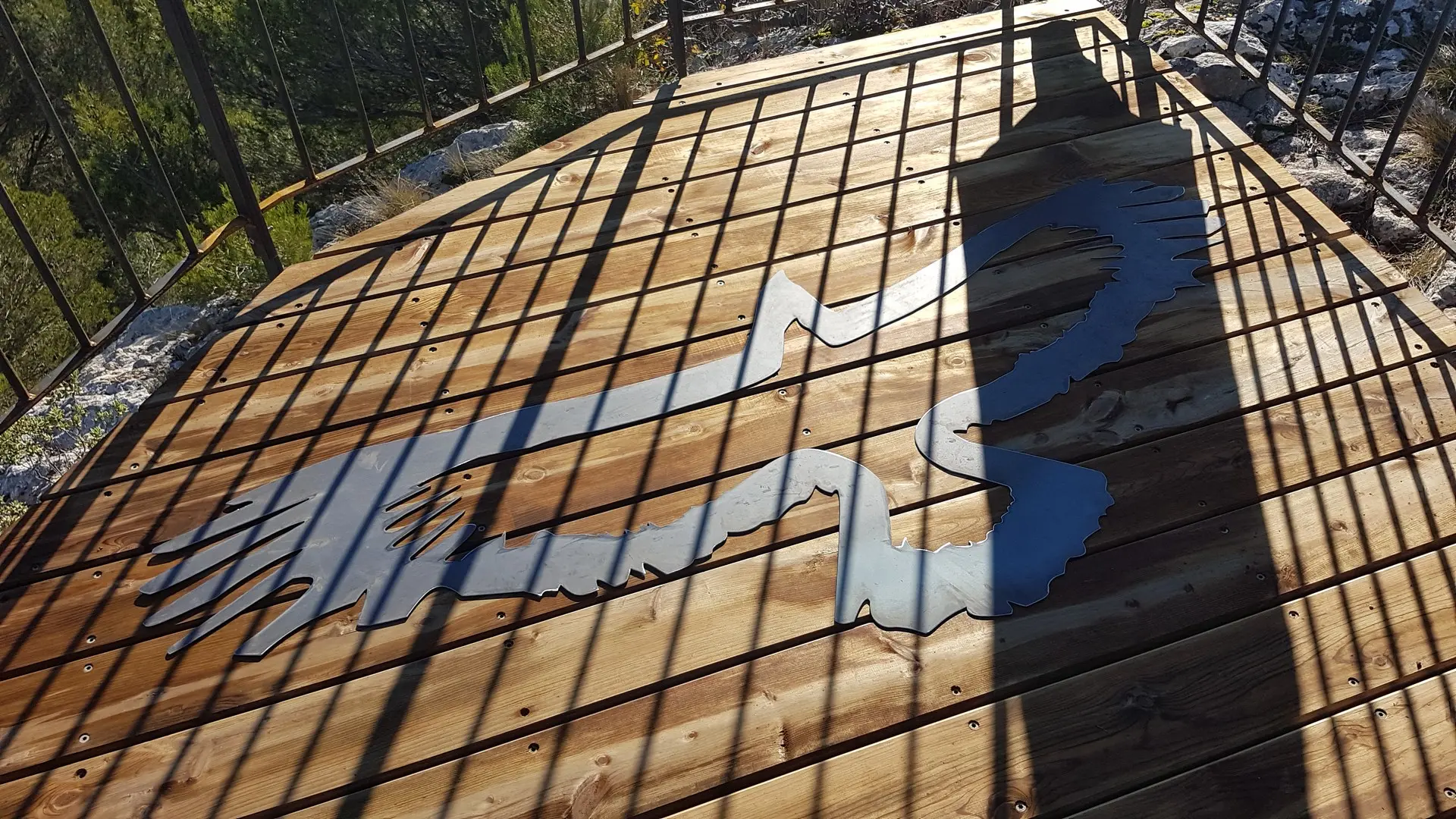 Conçu par l’Atelier aux Iris et réalisé par Passion Acier Design, le belvédère met en valeur les savoir-faire et les matériaux locaux, en particulier le pin d’Alep, essence caractéristique des Alpilles. Ce bois durable, utilisé pour le platelage, s’inscrit dans la démarche du Parc visant à promouvoir les ressources du territoire, comme cela a déjà été fait pour le bardage de la Maison du Parc.