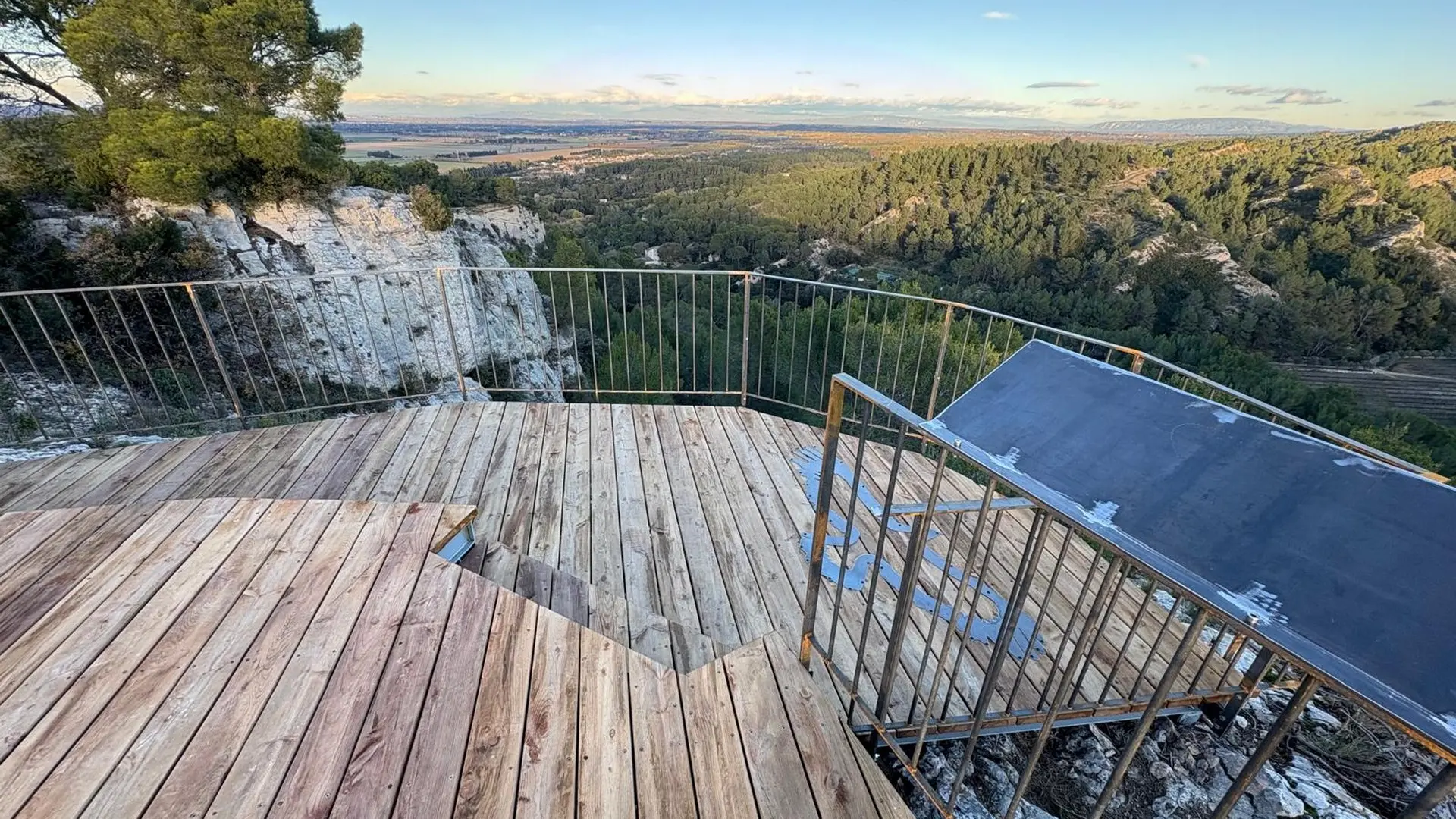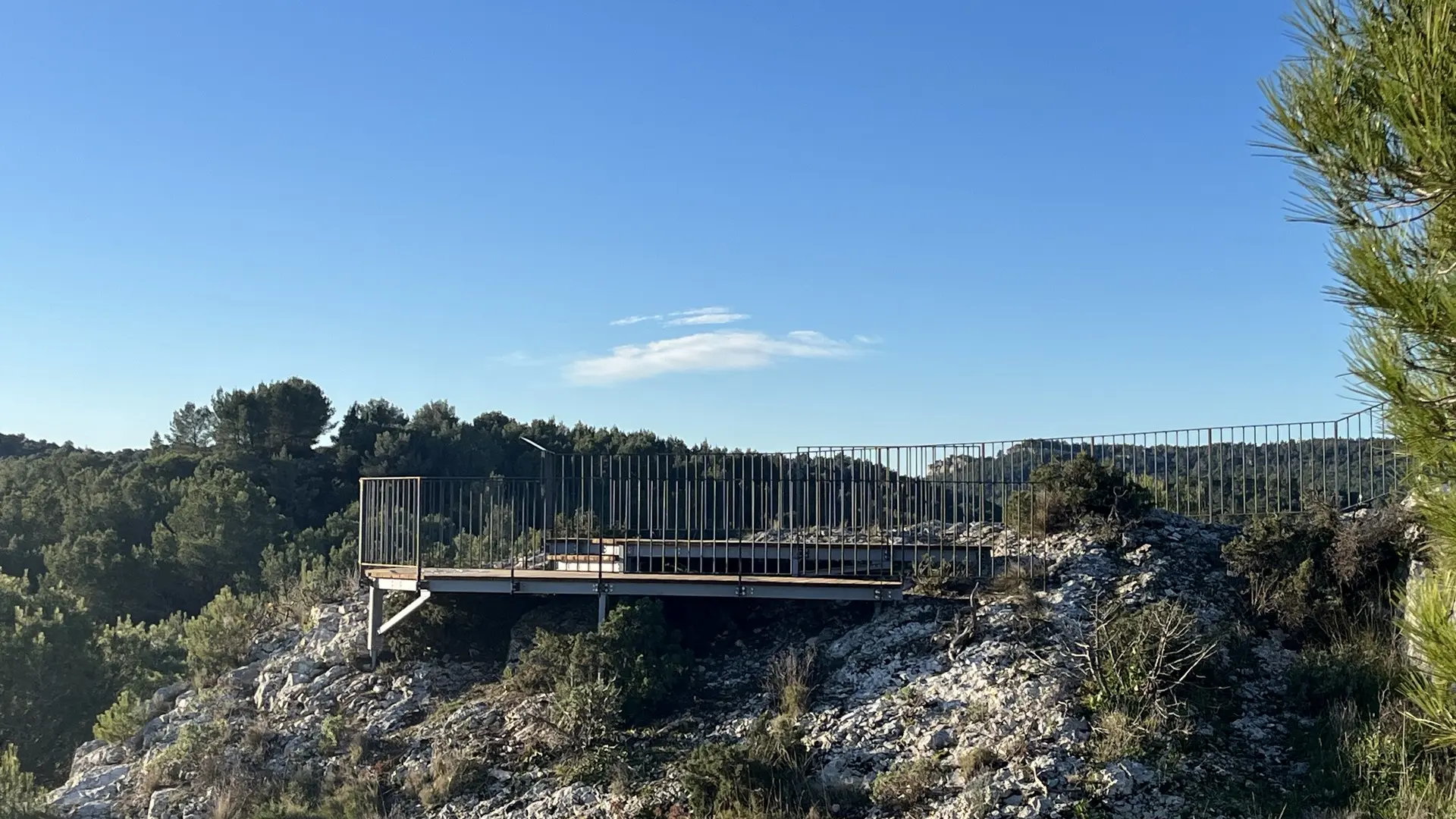 Au-delà du panorama qu’il offre sur l’un des espaces forestiers les plus emblématiques des Alpilles, le belvédère devient un lieu de sensibilisation et de découverte. Des dispositifs pédagogiques et un panneau d’interprétation invitent à porter un regard renouvelé sur cette “grande pinède”, sa biodiversité, ainsi que sur les activités qui la façonnent, qu’il s’agisse de sylviculture, de pastoralisme ou de tourisme nature.