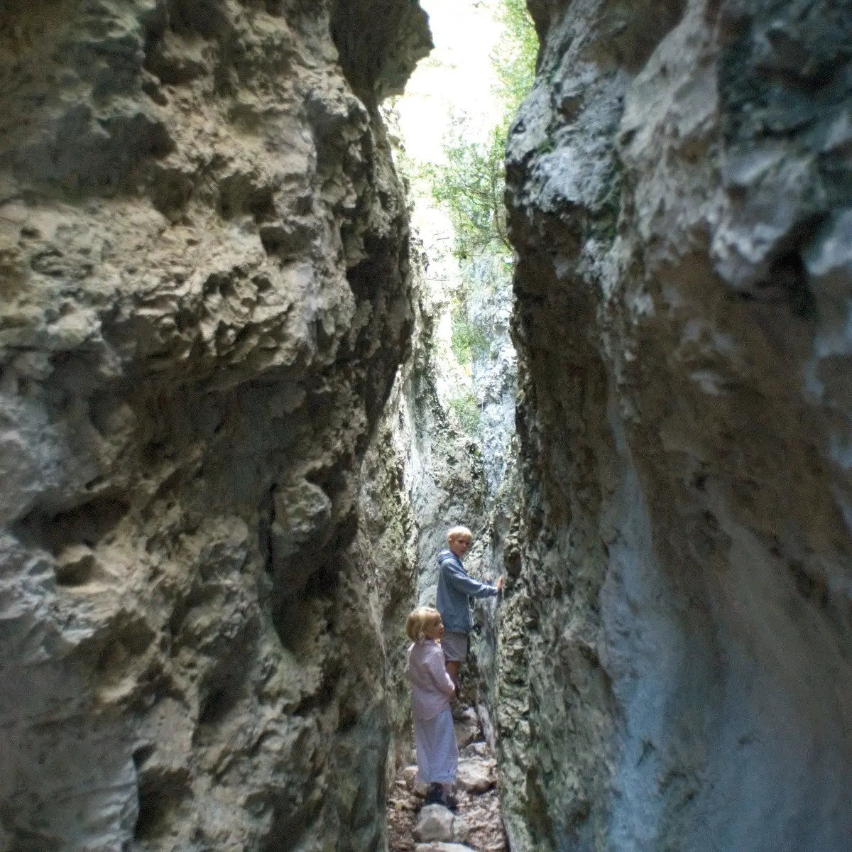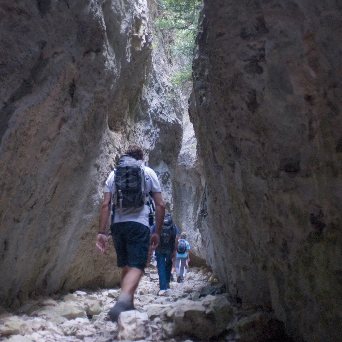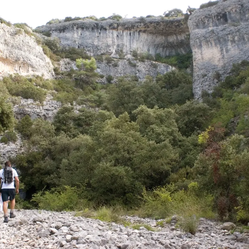 Large à sa base, elle se resserre progressivement. A certains endroits, le passage est si étroit qu'une seule personne peut s'y engager. De hautes falaises dominent le sentier qui la parcourt. Par temps de pluie un ruisseau éphémère y coule. Jadis cette eau était récupérée par un système de tuyaux en terre cuite et alimentait la fontaine du hameau des Baux. Sauvage et mystérieuse, elle est un des sites à privilégier pour une randonnée facile et dépaysante.