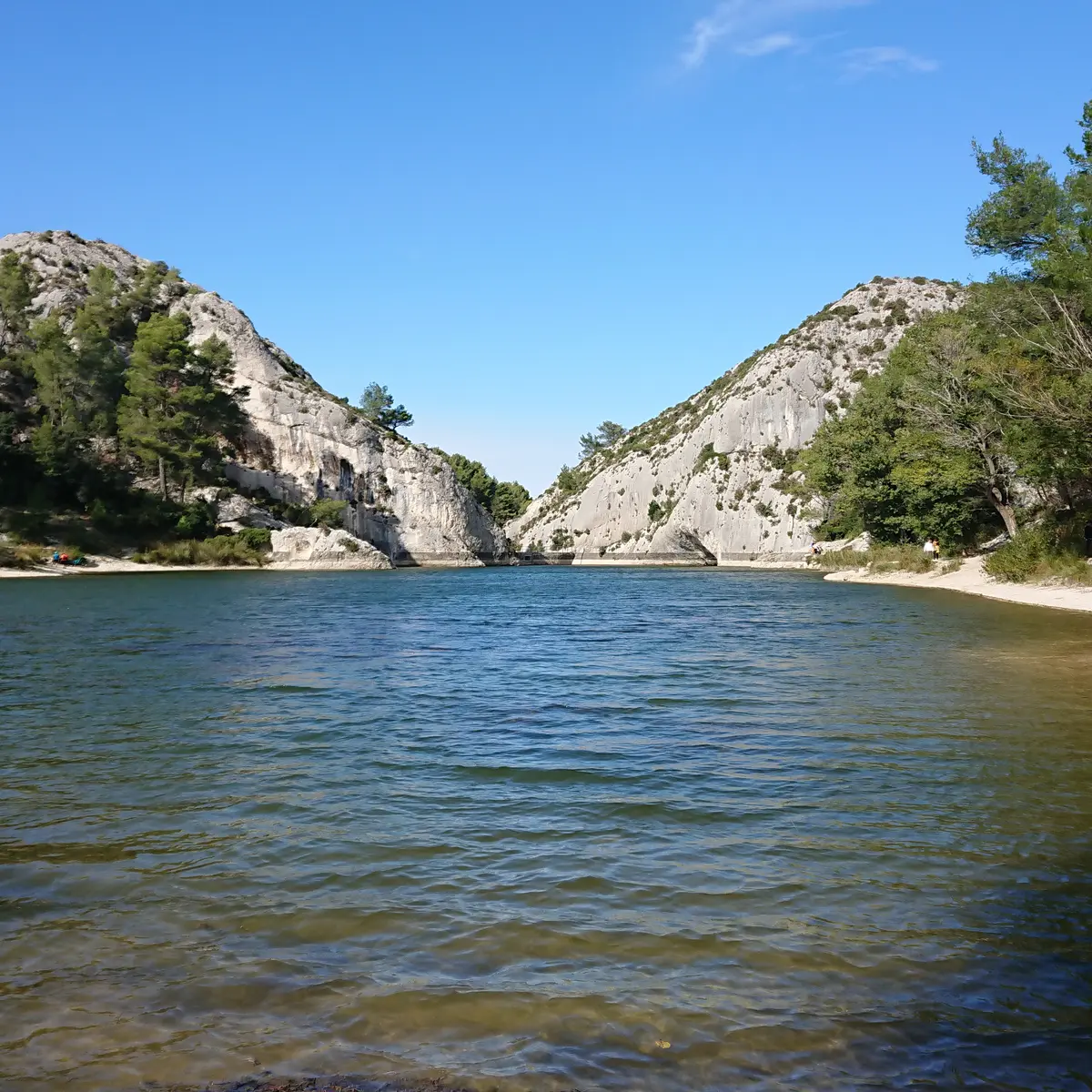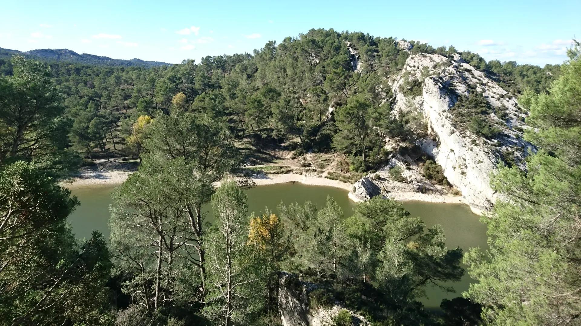 Le Lac de Peïroou est un lac artificiel à proximité de Saint Rémy de Provence, au coeur des Alpilles. Le lac se termine par un petit barrage joignant 2 falaises.