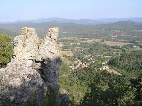 - Au pied, en contrebas, jaillit la source du Caramy, rivière qui après avoir traversée de magnifiques gorges rejoint l'Issole puis l'Argens avant de se jeter dans la Méditerranée à Fréjus.