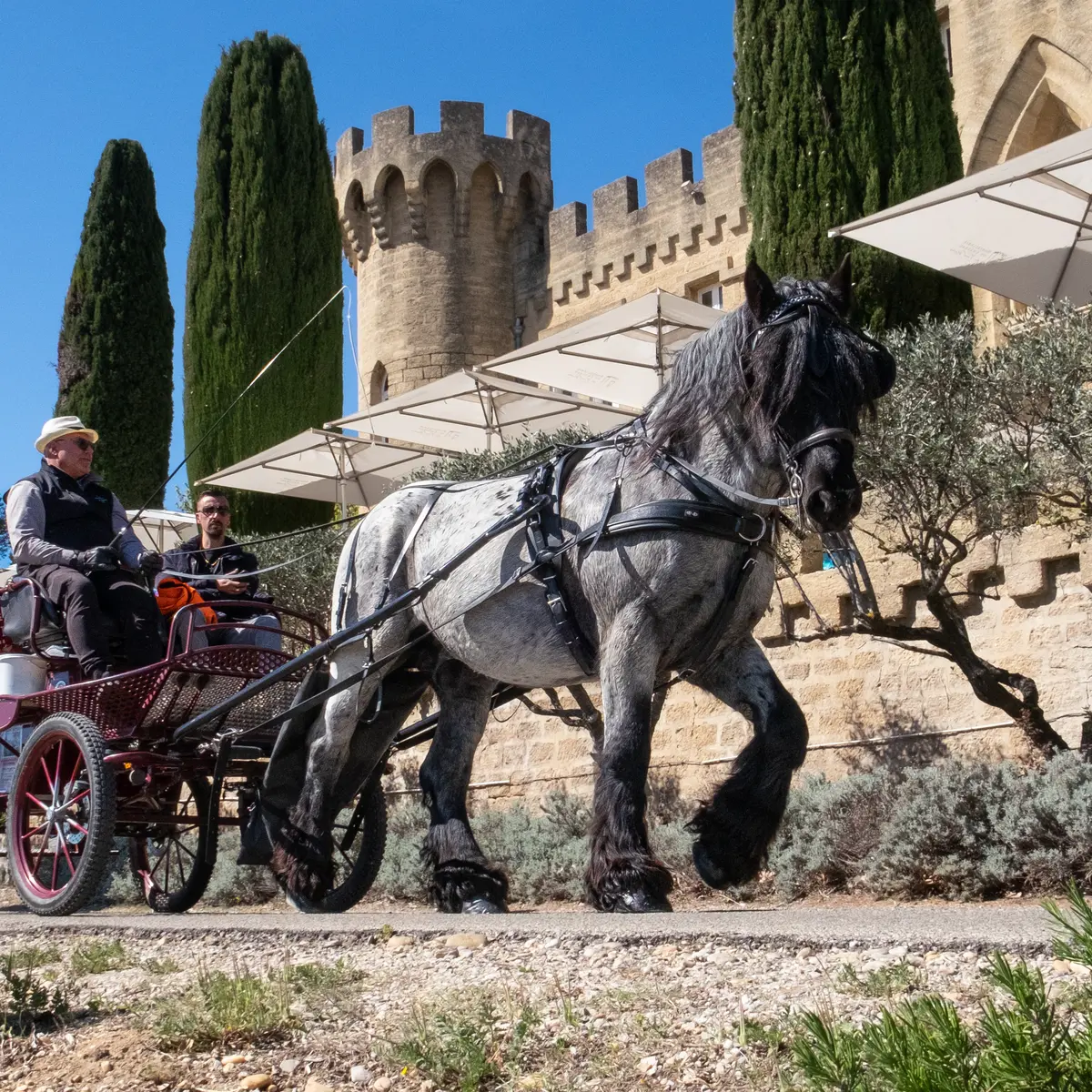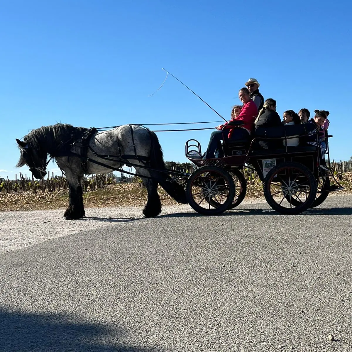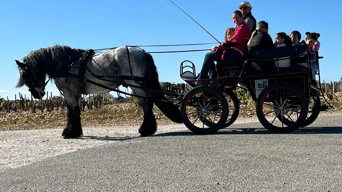 After 1h00 of carriage ride, led by Impérial de la Farge, magnificent horse Trait Poitevin Mulassier led by Vincent your coachman, take the aperitif of noon or evening at the Domaine de Pécoulette!