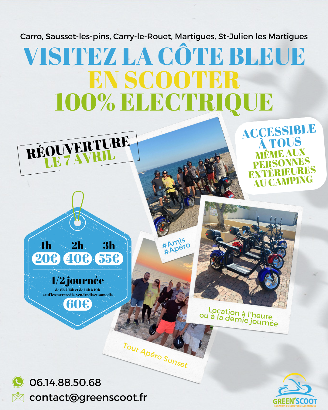 Green'Scoot also offers hourly rentals throughout the day with the possibility of returning after midnight if you want to spend your evening in Martigues or Sausset-les-Pins for example.