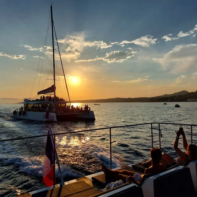 In the evening, take a catamaran for a trip between the Baie d'Agay and the Ile d'Or, where you'll enjoy a sublime sunset over the red rocks of the Esterel.